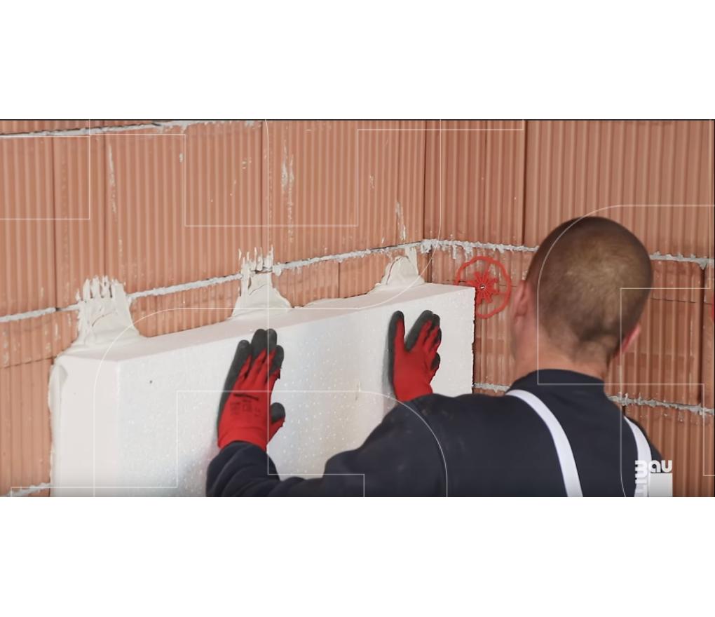 - Meteen na het verlijmen van de isolatieplaten worden op de geplaatste kleefankers StarTrack ca. 1– 2 cm dikke lijmstippen aangebracht. De verlijming dient “nat in nat” met de aangebrachte lijmstippen plaats te vinden.