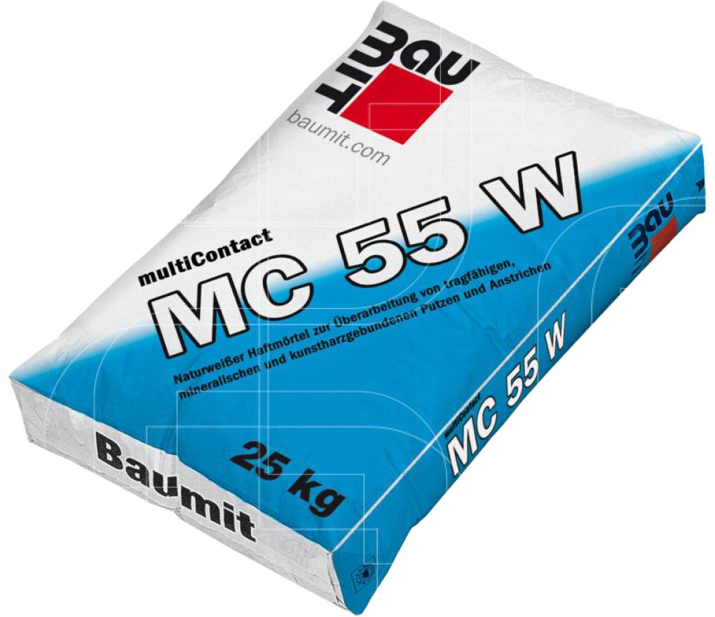 Hechtmortel, natuurwit, voor het afwerken van dragende minerale en met kunsthars gebonden pleisters, renovatiepleisterwerk en verf, hechtbrug op beton en isolatieplaten, dunne pleister op beton en vlak metselwerk, versterkt met vezels, viltbaar, laagdikte: minimaal 3 mm.