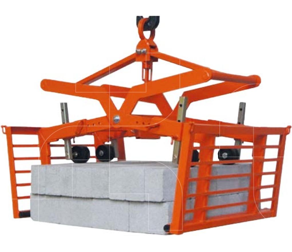 Dit is een klem ontworpen voor het handelen van betonnen blokken, klemming gebeurt doormiddel van een manueel of automatisch systeem. De opening van de klem is instelbaar.
