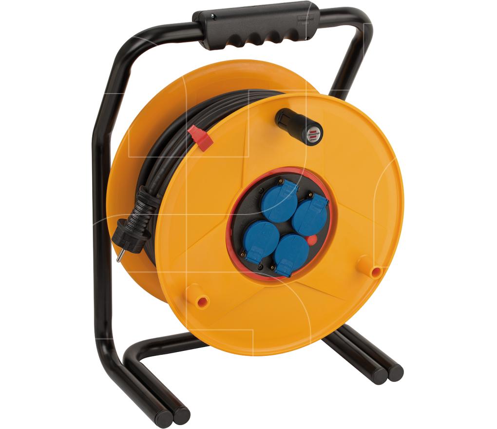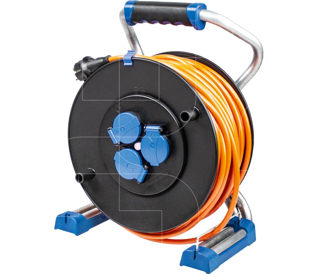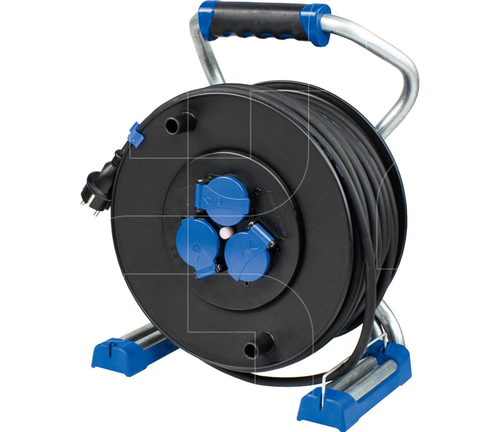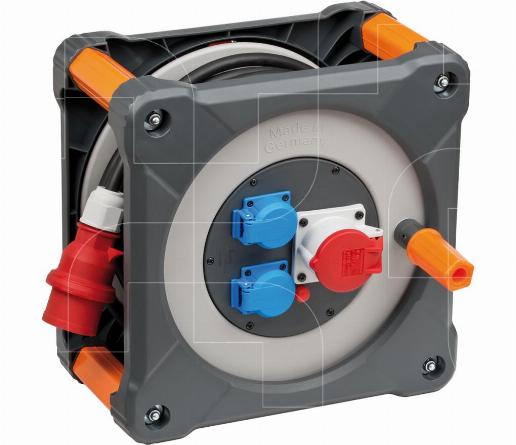 Kabelhaspel met 2x230V + 1x400V/16A contactdozen met 3-polige veiligheidsuitschakeling en 30 meter kabel