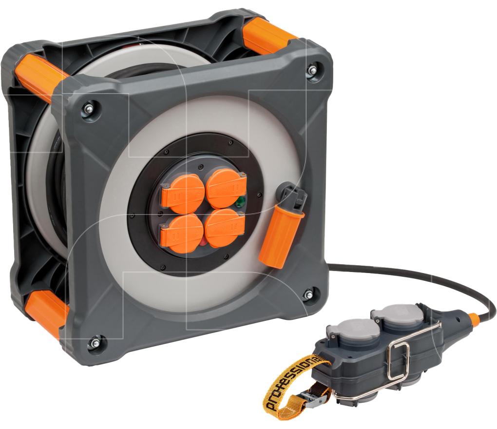 ProfessionalLINE kabelhaspel CEE IP44 30m H07RN-F 5G2,5 2x230V + 1x400V/16A is een kabelhaspel met overrolbescherming.