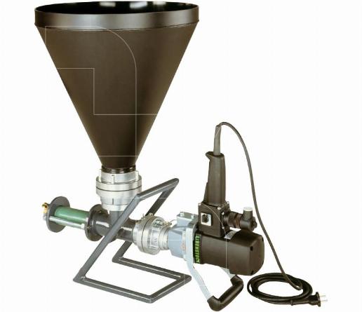 Elektrische schroefpomp voor het verpompen van minerale lijmen en mortels.