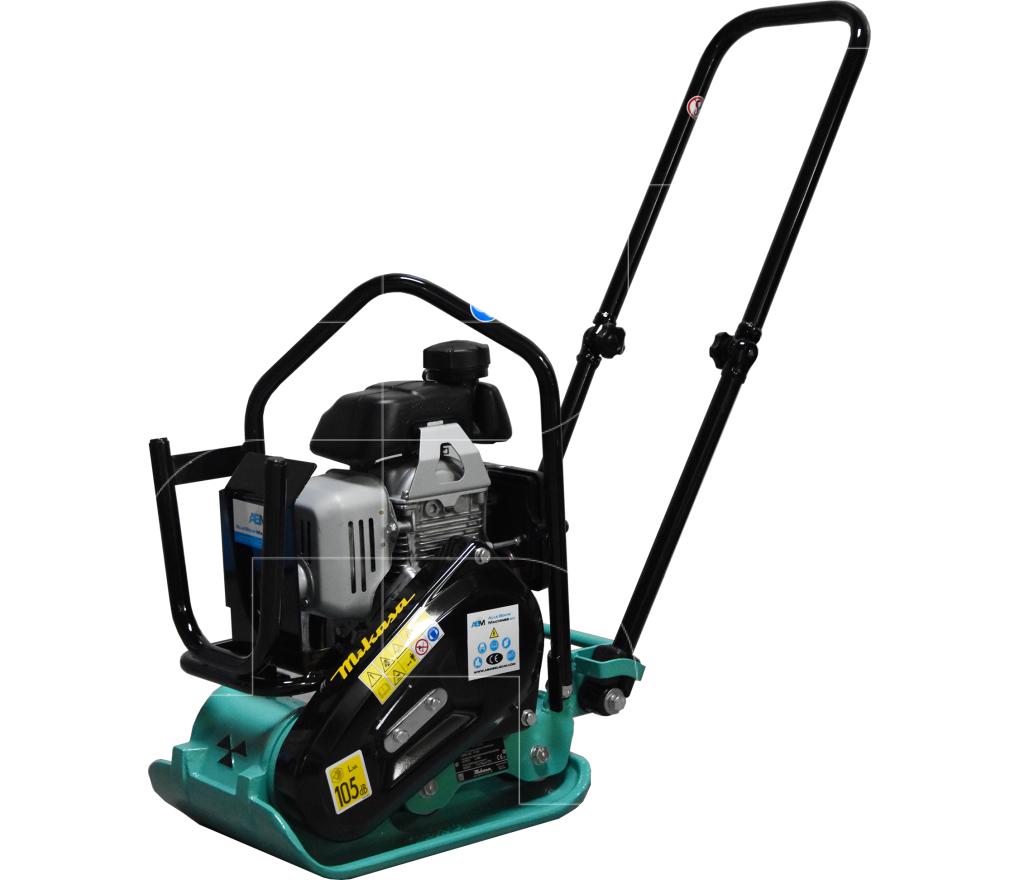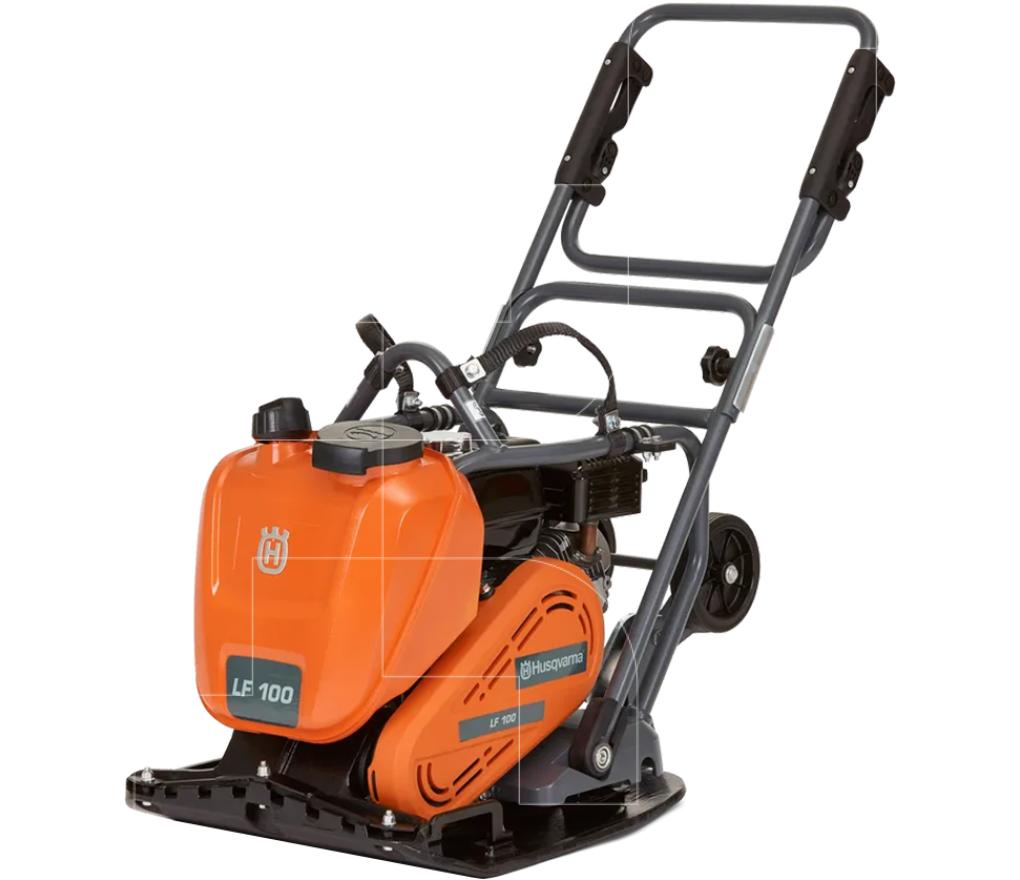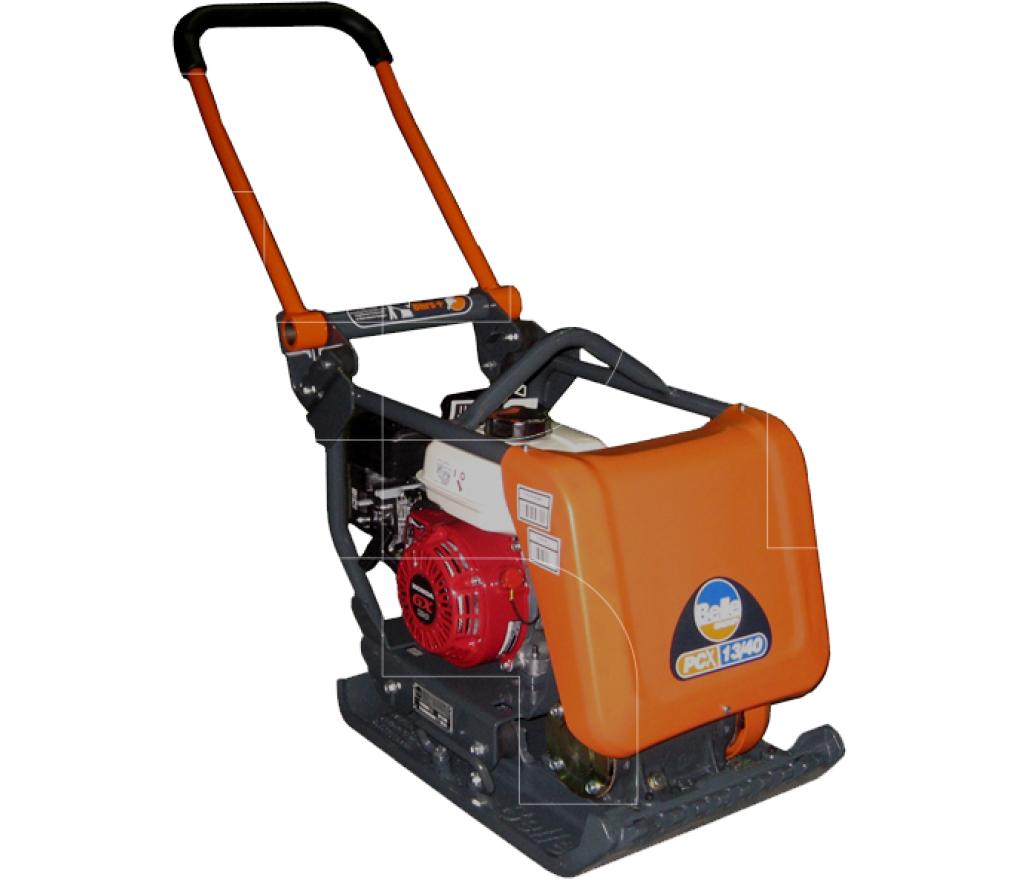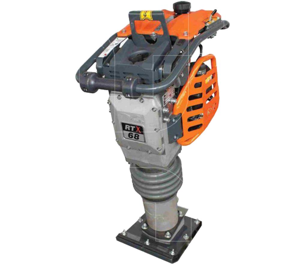 Trilstamper RTX68 van BG met trilkracht 1600 kg, werkt op een Honda GXR120 benzinemotor en helpt bij het aantrillen van klinkers, tegels, zand, stabilisé, asfalt.