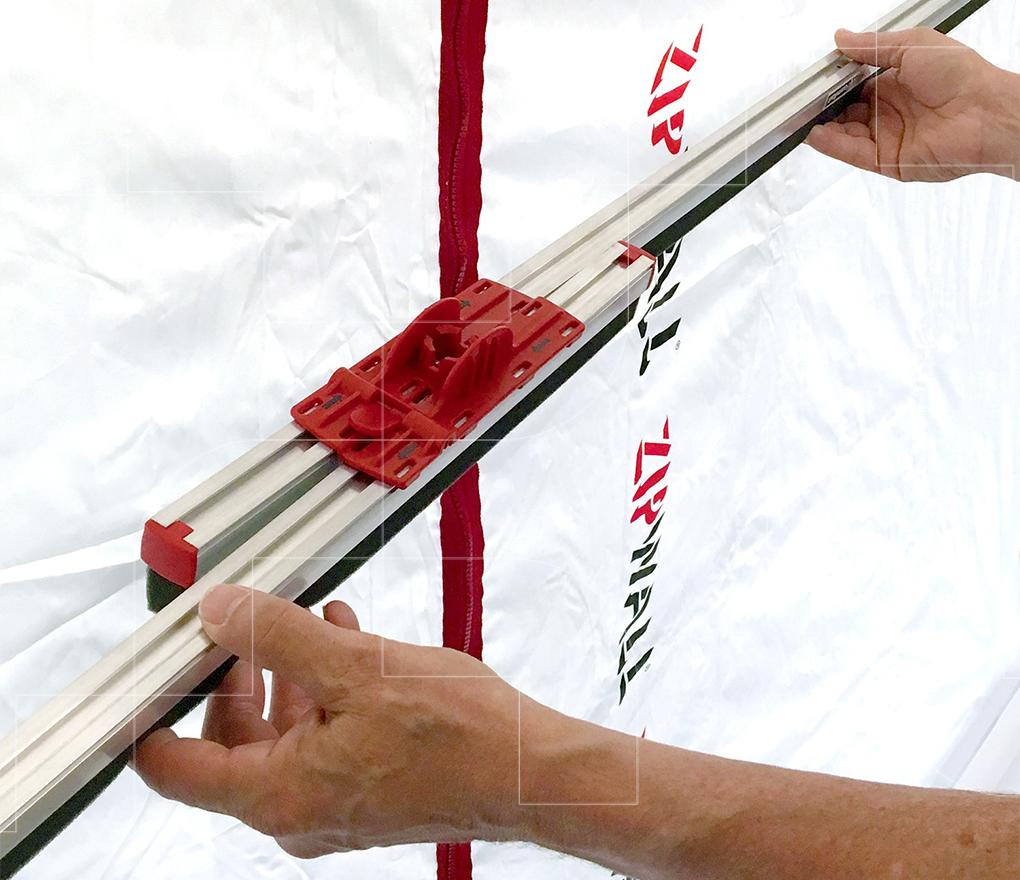 De folie van het scherm is één doorlopend geheel van links naar rechts, zonder onderbrekingen. Door middel van de bijgeleverde zelfklevende ritssluitingen maakt u een doorgang in de folie, precies daar waar nodig. Zo ontstaat in no-time een strak aaneengesloten stofscherm, variabel van 0 tot ca. 10 meter.