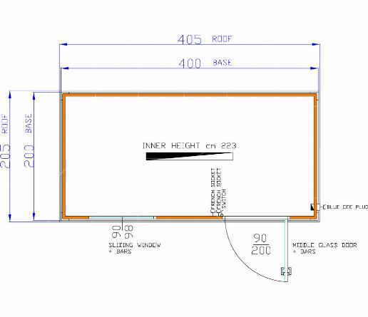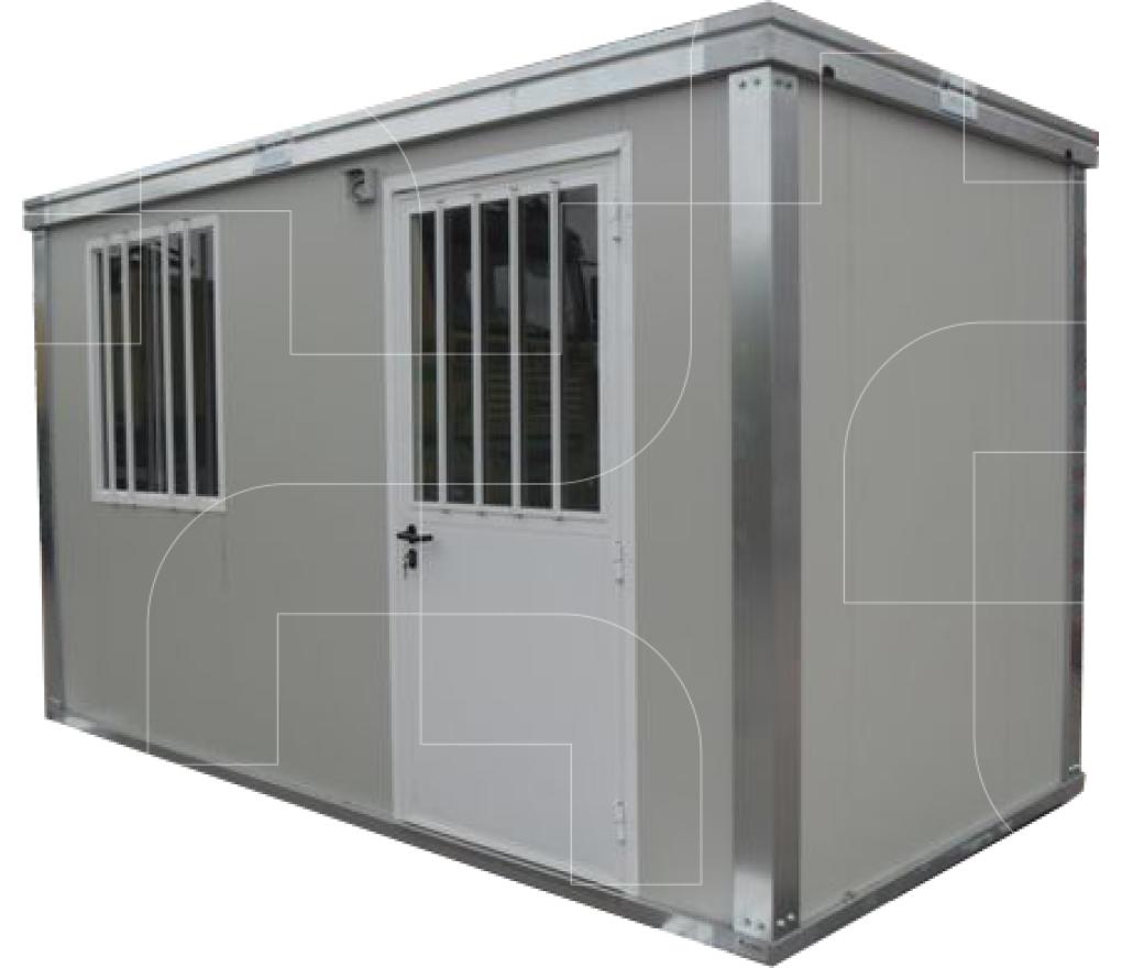 Standaarduitrusting omvat: geïsoleerde container, deur met raam 97x205 cm, schuifraam 97x105 cm, verlichting, elektriciteit, vier hijsogen aan de bovenkant en CE-stekker aan de buitenkant.