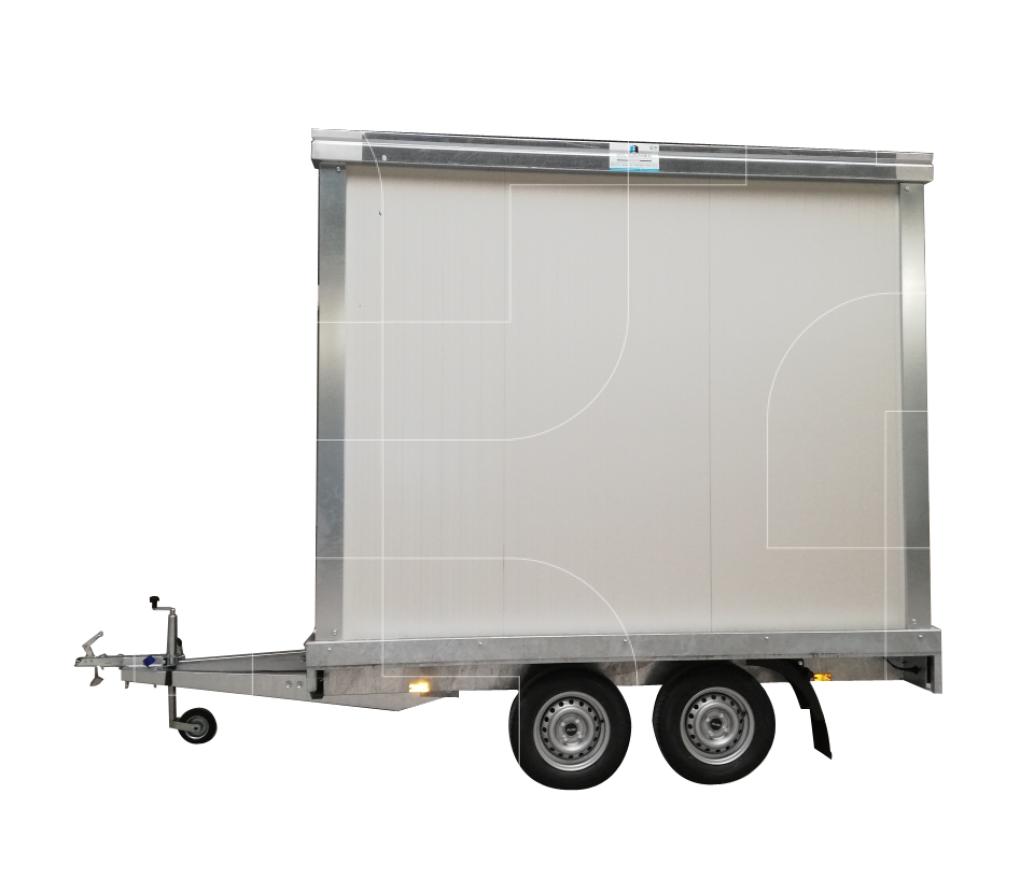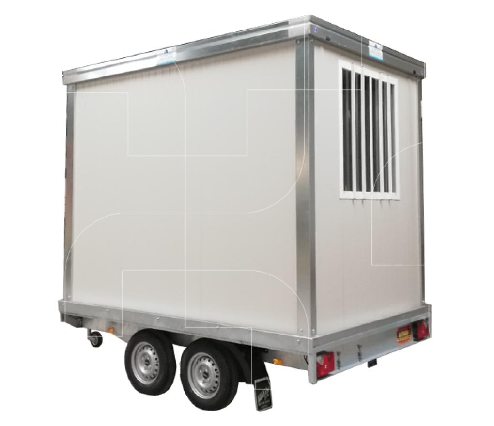 De werfwagen van het type UC met afmetingen 3x2 meter voor snel transport is een onderdeel van de inrichting van de bouwplaats en wordt ingezet als een mobiele en verplaatsbare schaftwagen, bijvoorbeeld voor het vervoeren van materialen of om extra gemak op de bouwplaats te bieden.