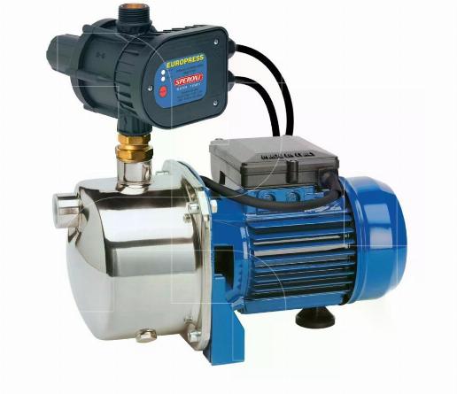 Zelfaanzuigende jetpomp met presscontrol en met inox pomphuis. Ideaal voor het oppompen van water vanuit een regenwaterput en dienstdoende als watervoorziening in het huis zoals voor kranen,wc etc.