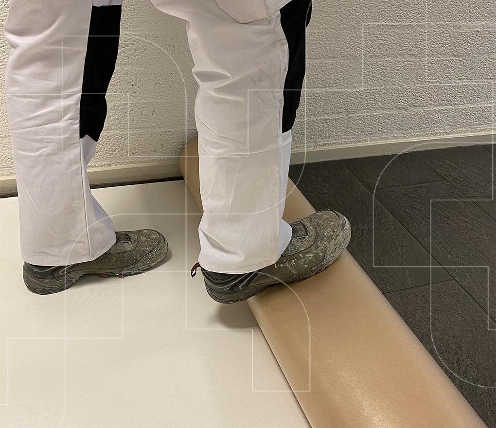 - Begin aan één kant van de ruimte en rol het afdekkarton uit
