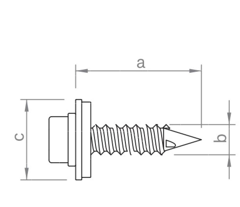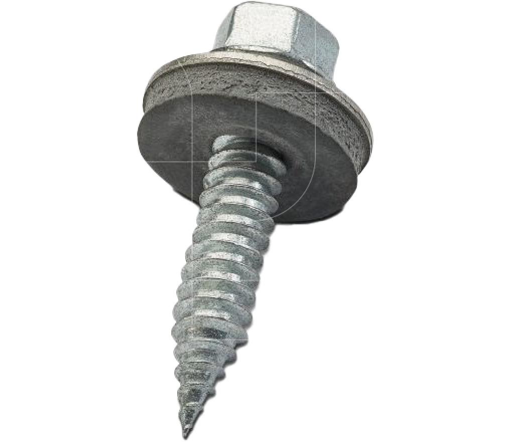 Boorschroef of plaatschroef met zeskantaandrijving SW8 voor het verbinden van platdakcomponenten met neopreen afdichtingsring.