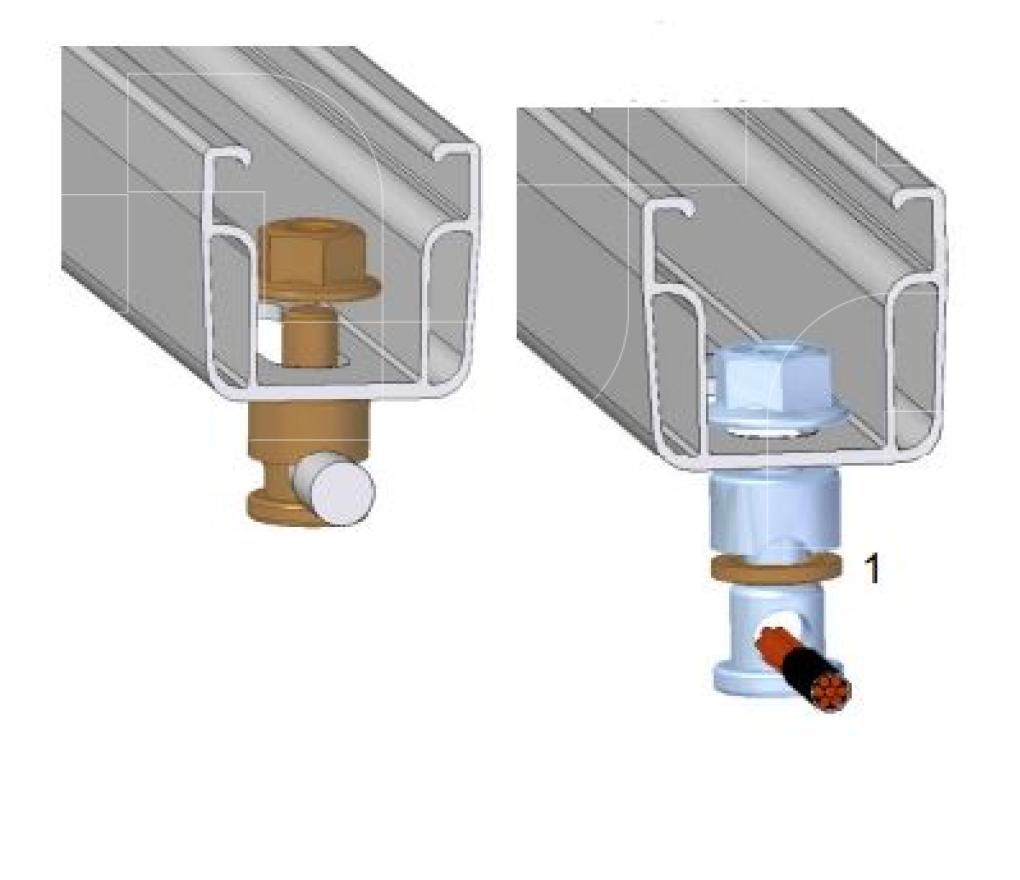 De aardingsklem wordt gebruikt om de C-rail of de grondrail te integreren in de bliksembeveiliging.