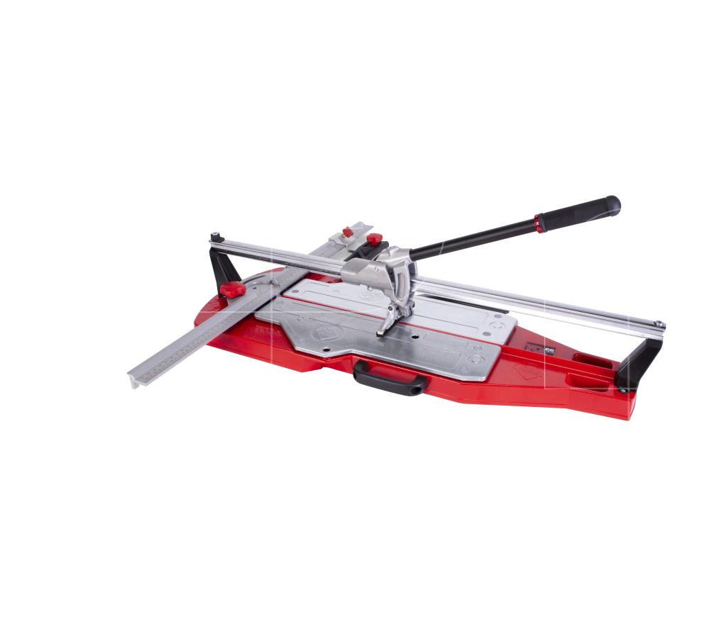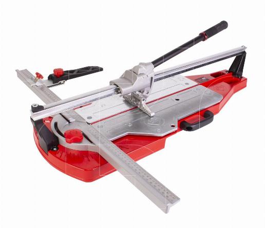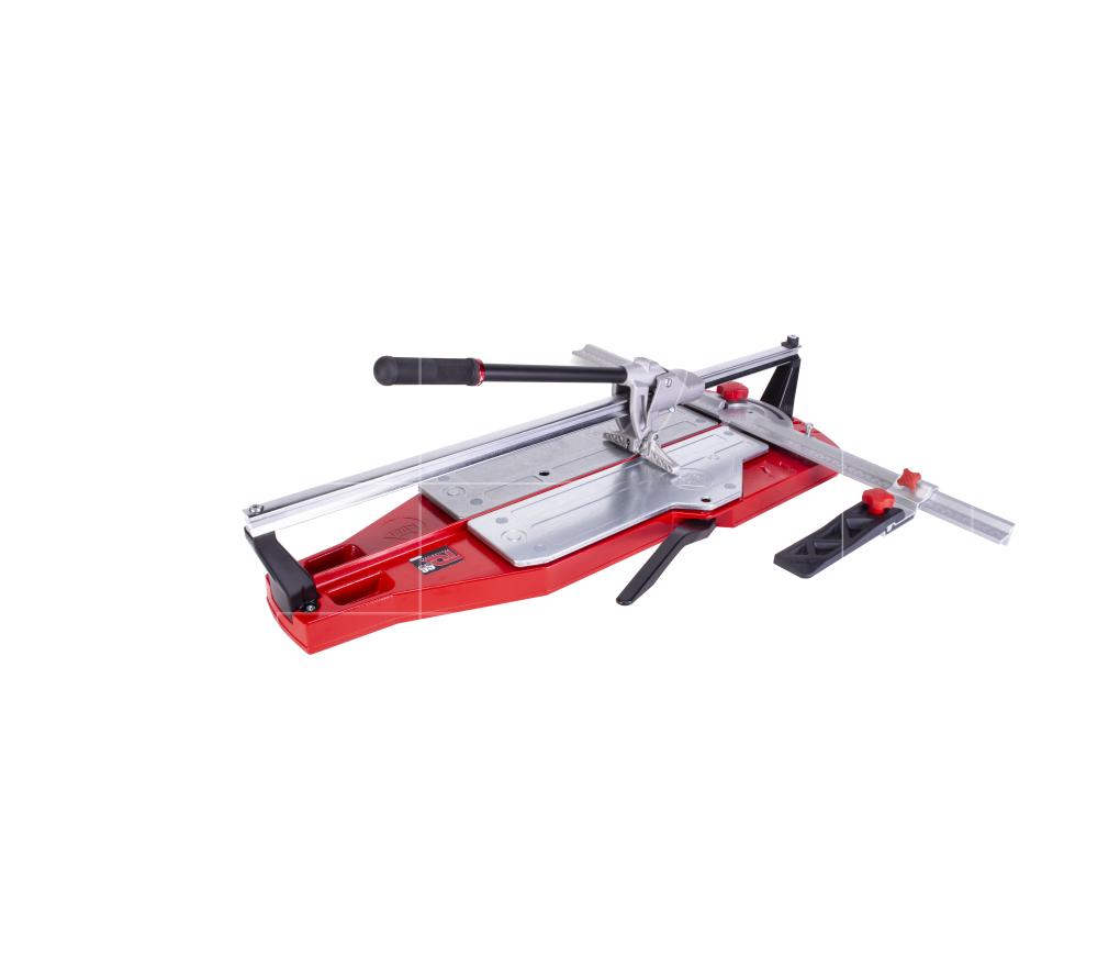 Professionele tegelsnijder met een enkele geleiding, uitgerust met een exclusief, gepatenteerd, zelfinstellend lagersysteem voor soepel snijden en een perfecte positionering van de tegel op de plank.