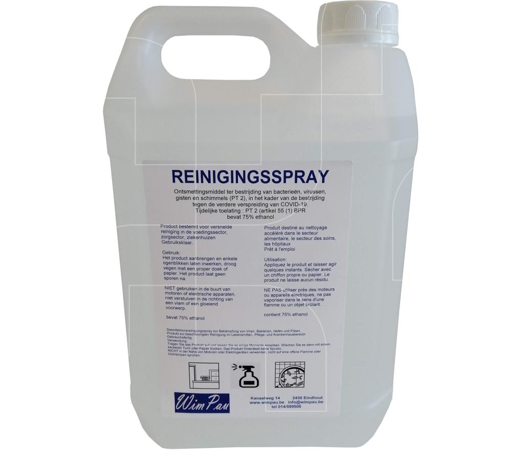Gebruiksklare, hygiënische ontsmettende spray voor het ontsmetten van oppervlakken, deuren, klinken, werkmateriaal, zetels, stoelen, etc.