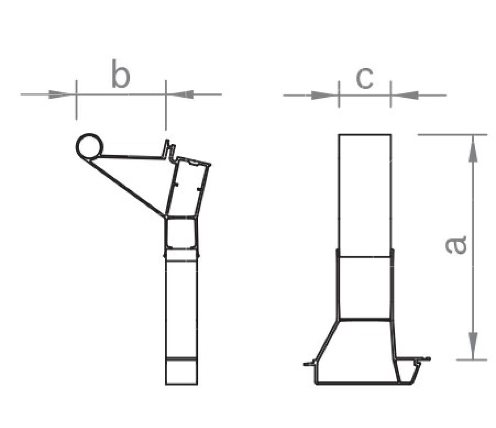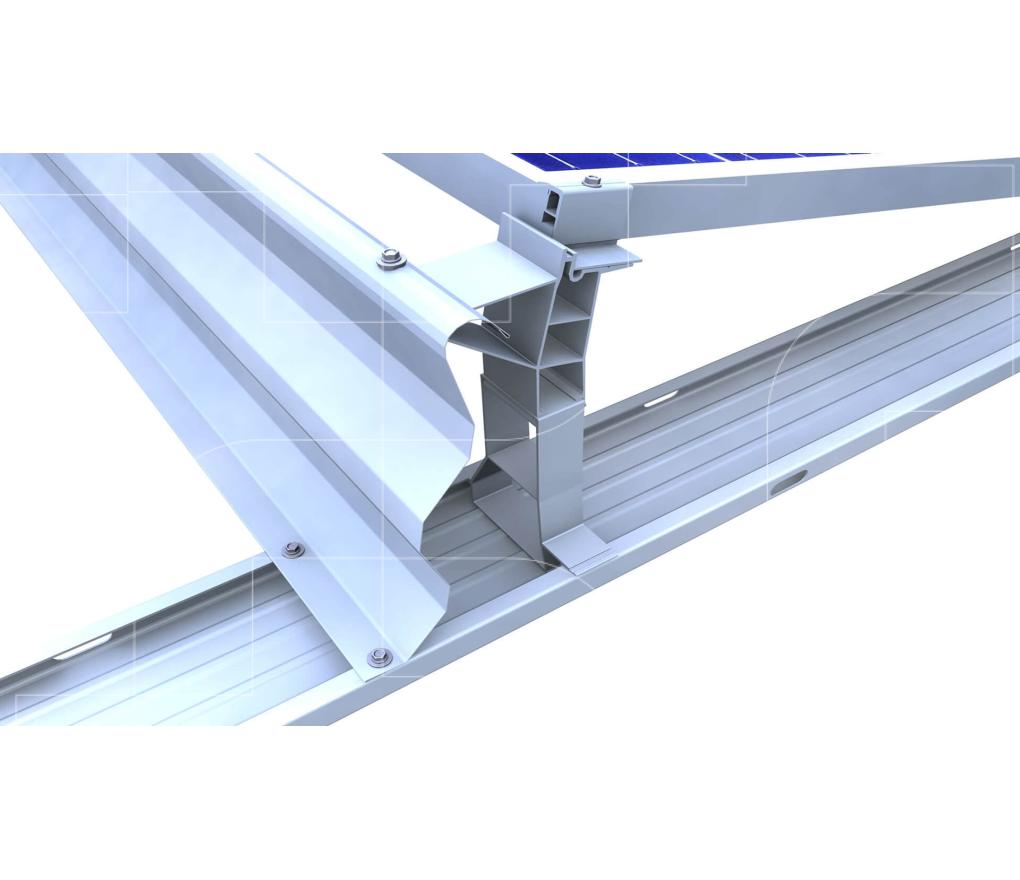 Modulesteun van het gesloten pannendak, om in de basisgoot te klikken en de winddeflector erop te bevestigen, hierop rust de achterkant van het paneel.