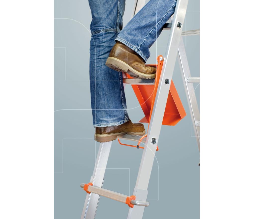 Het wordt op de sport ingehaakt en is eenvoudig inklapbaar om de ladder snel en veilig te kunnen betreden.