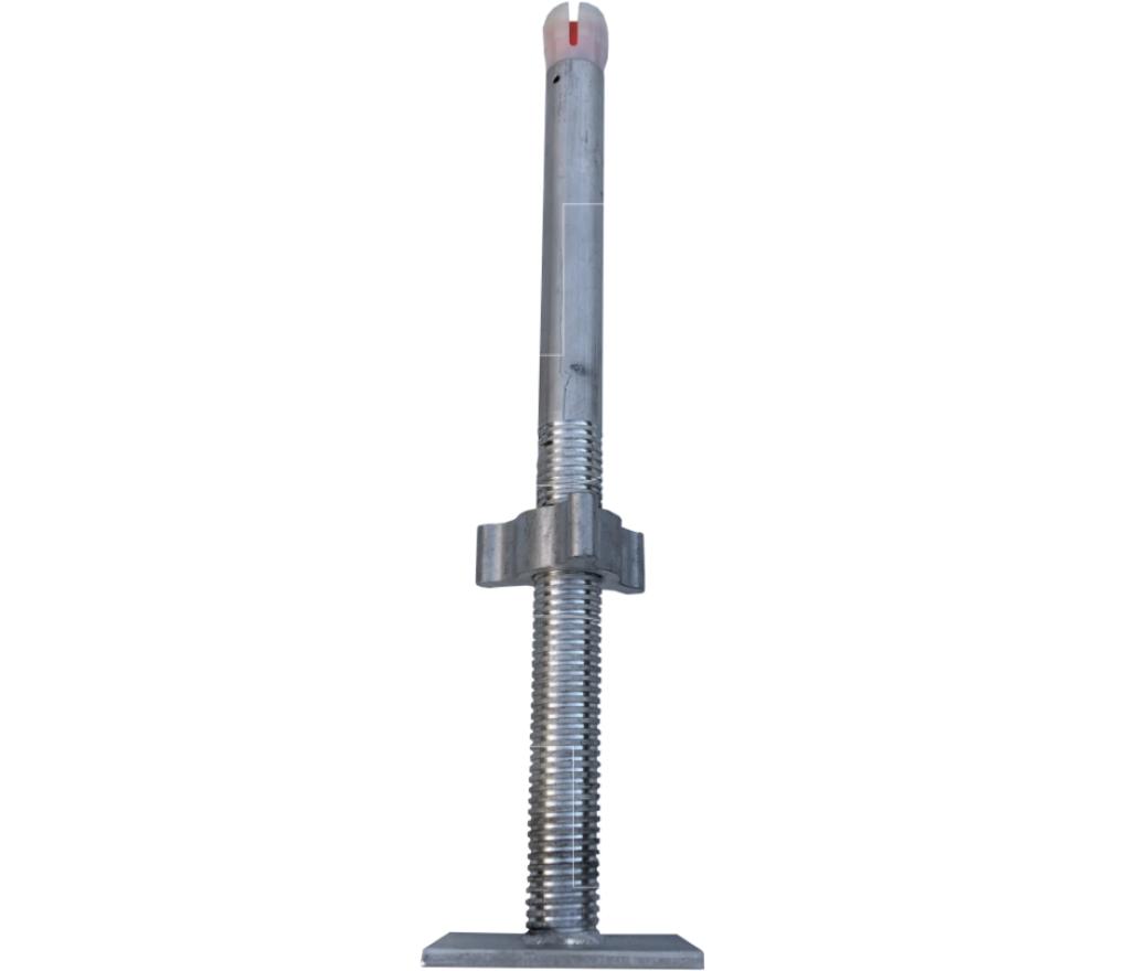 Aan de bovenkant heeft de spindel een kunststof dop, waardoor de spindel in het steigerframe blijft zitten als de steiger wordt opgetild.