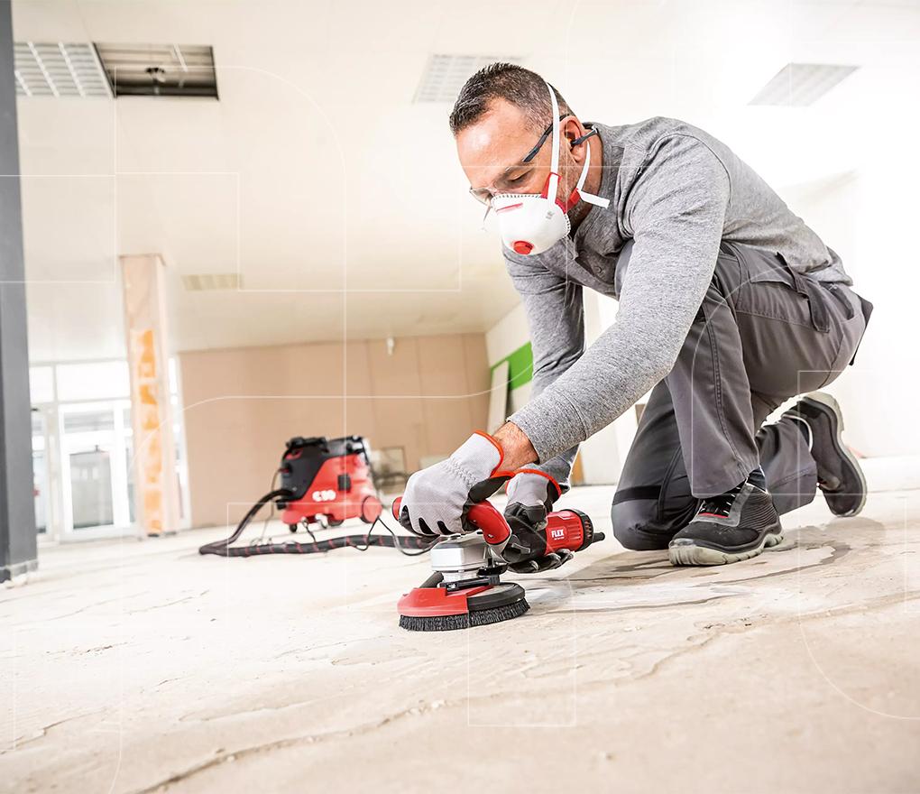 Perfect geschikt voor de bewerking van muren, plafonds en vloeren. Efficiënt en zuinig werken dankzij optimale coördinatie tussen machine en schuurschijf