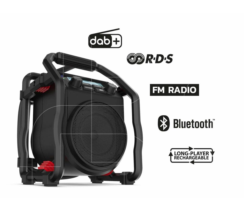 • Slagvaste behuizing van ABS-kunststof LCD-scherm met achtergrondverlichting Metalen luidsprekerrooster Rubberen bedieningsknoppen Flexibele opvouwbare antenne (type KDAB8) Netsnoer van neopreenrubber Opbergvak voor snoer van 2,8 meter aan de achterkant van de radio Volledig beschermde behuizing