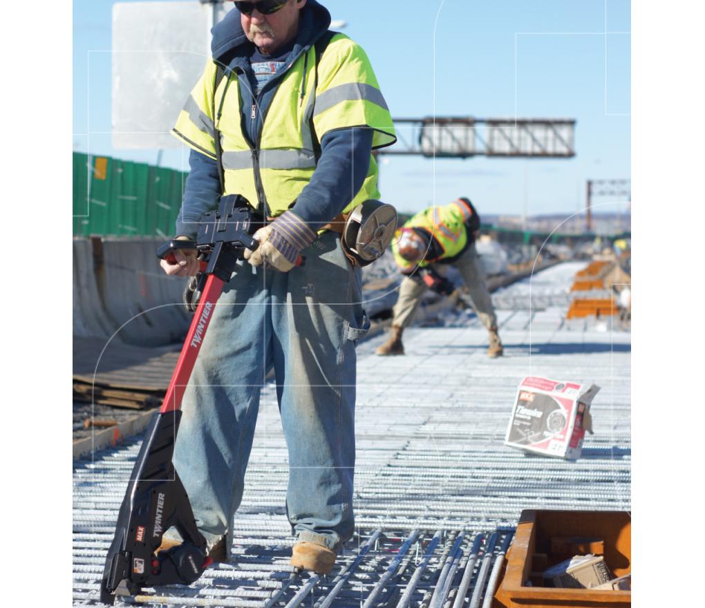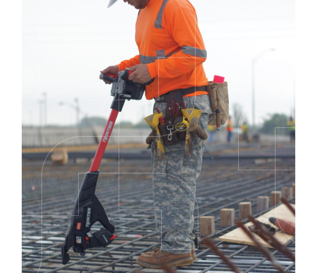 - De TwinTier kan 4000 kabelbinders per batterijlading en tot 240 kabelbinders per draadspoel (op 13 mm x 13 mm wapening) binden.