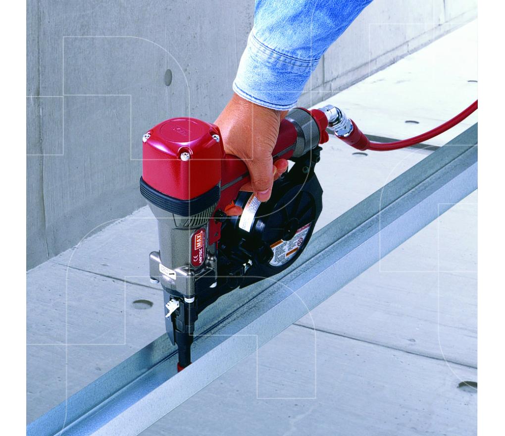 De HN25C kan worden gebruikt voor het aanbrengen van rachelwerk en tapijtstrips op beton. Het apparaat is lichter, sneller en efficiënter dan gasgereedschap.