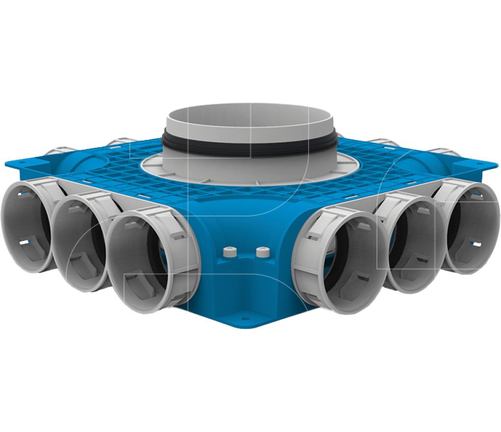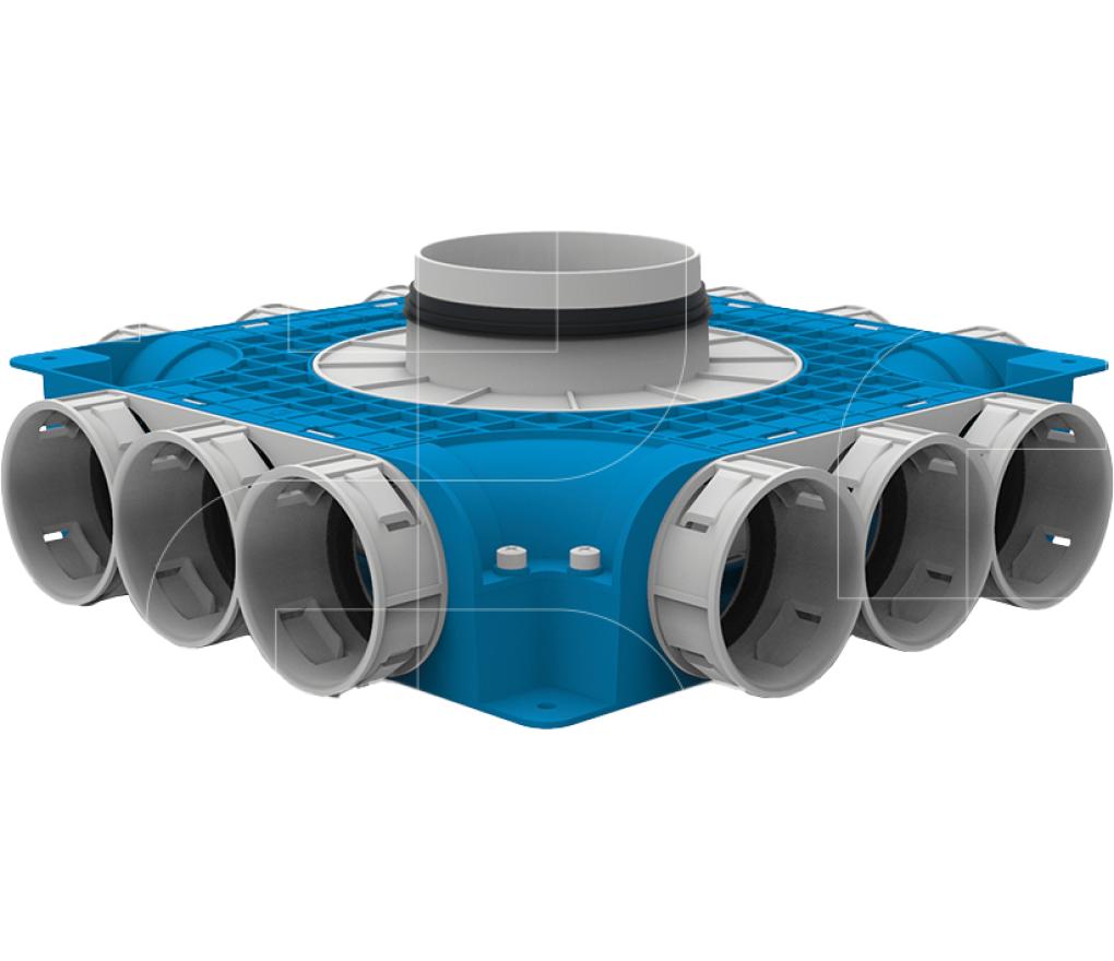 Uniflexplus+ Verdeler 12xØ69 met zijaansluiting Ø160 [VTVGS 69 160]