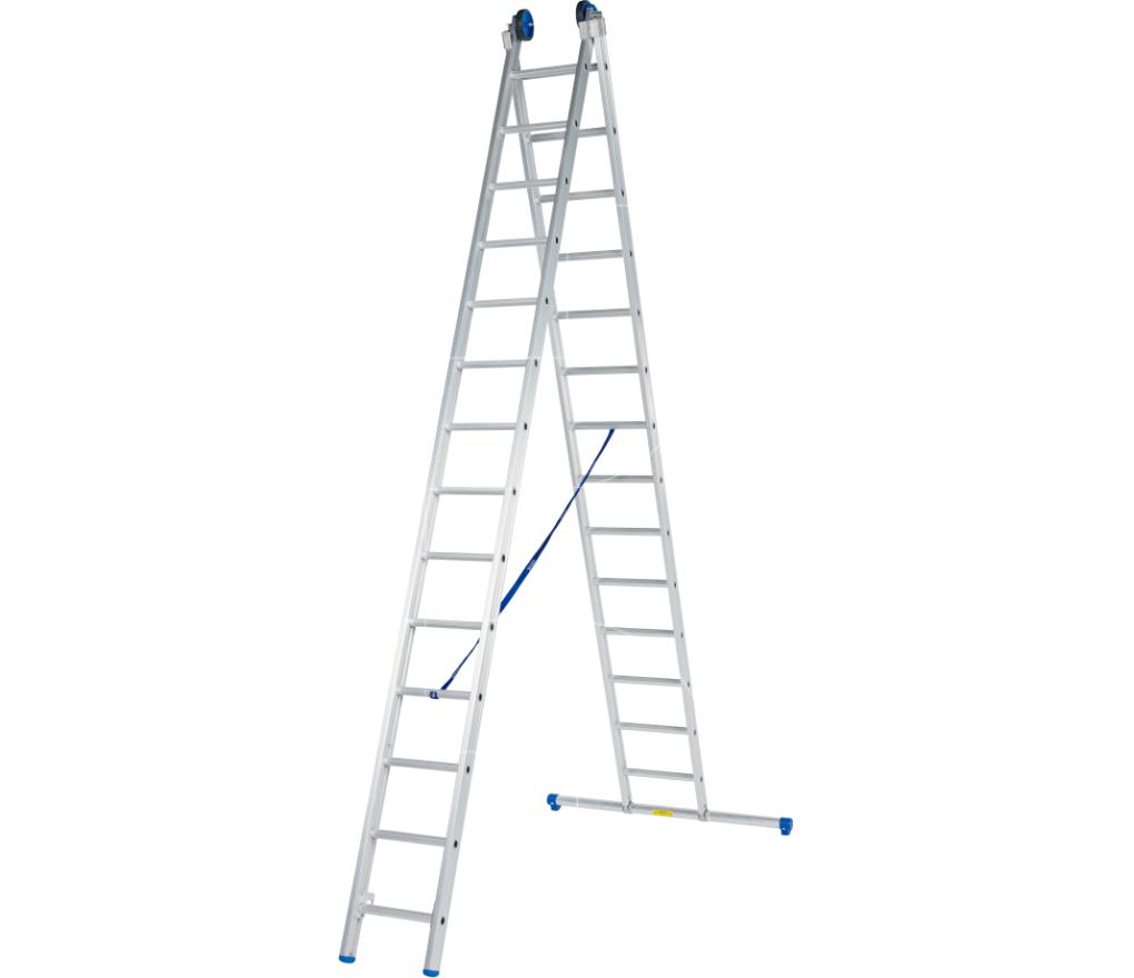 Schuifladder model C / 2 x 14 sporten, rechte voet, balk/VGS