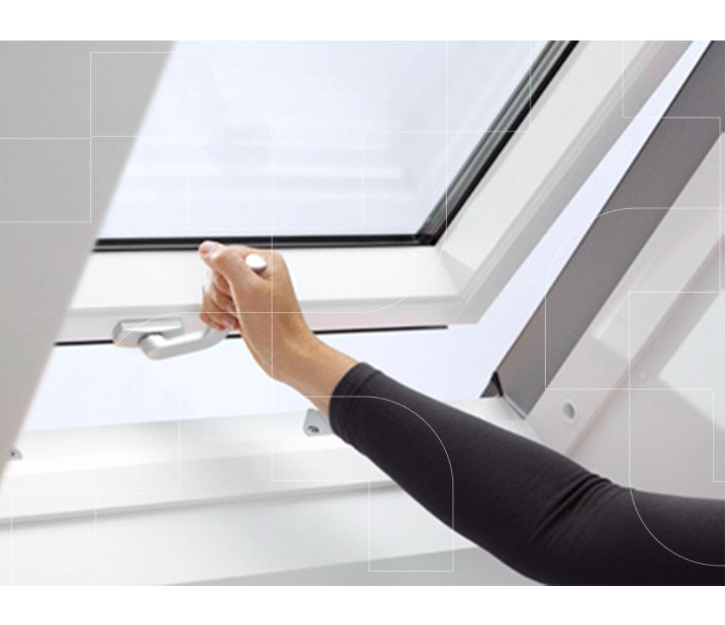 Twee manuele openingswijzen in één dakvenster: uitzetbaar (traploos uitzetbaar tot 45°) en wentelend.