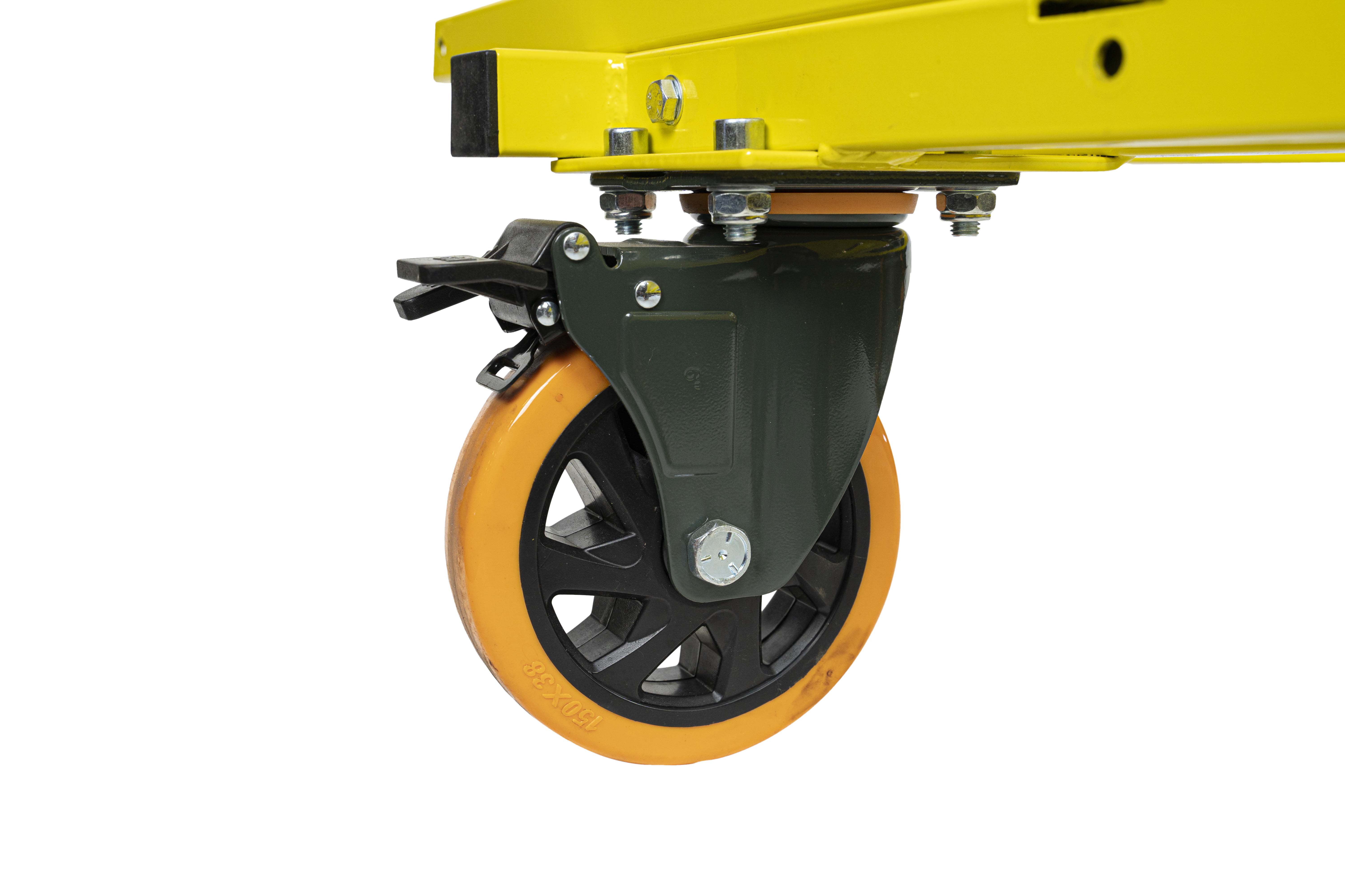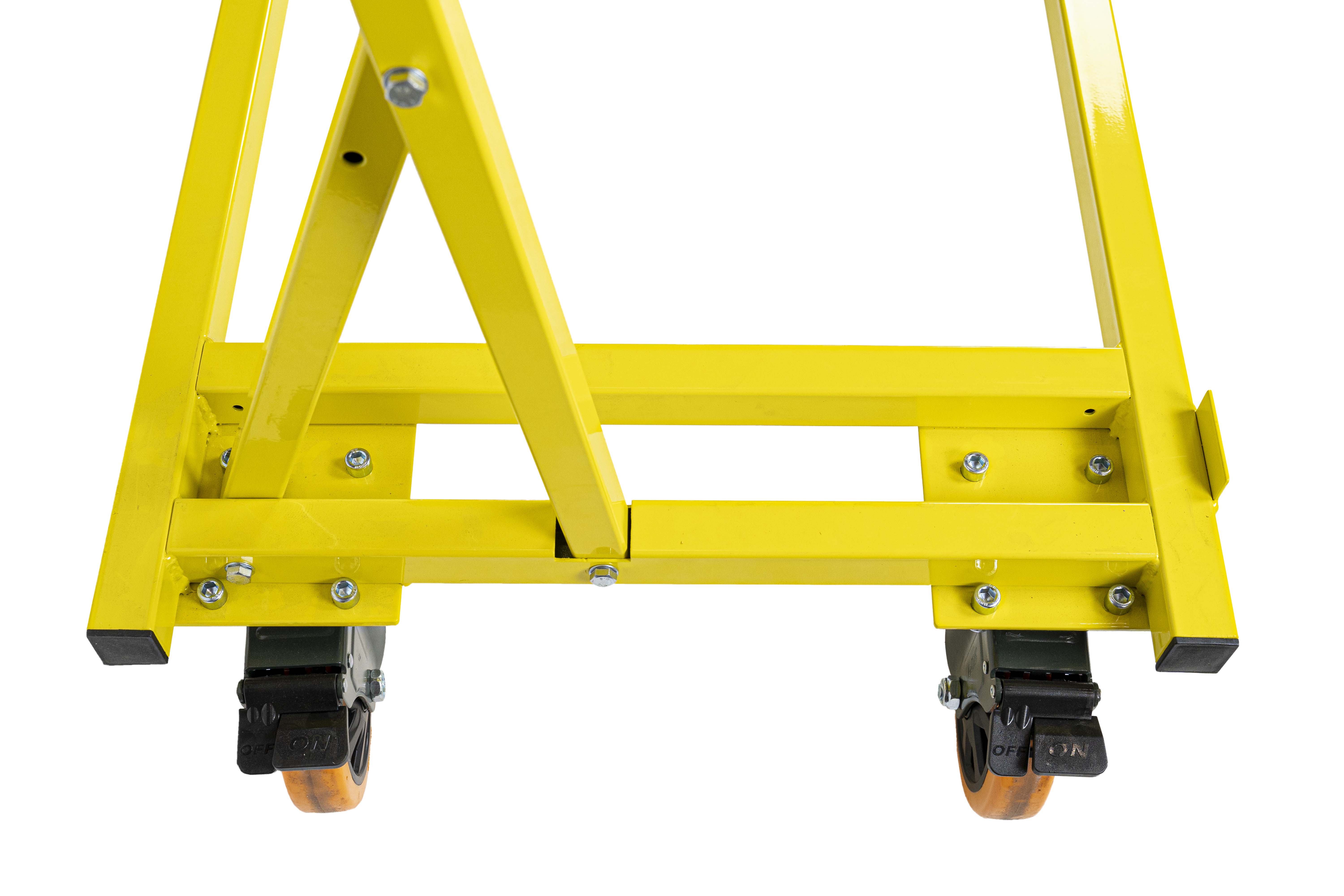 - Voorzien van 2 bokwielen en 2 geremde zwenkwielen.