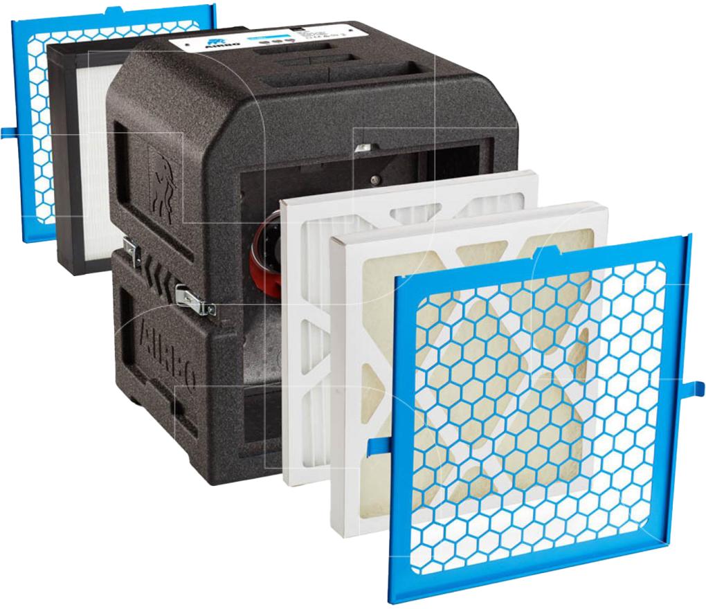 Deze aircleaner AC-2 filtert gevaarlijk fijnstof en zuivert de lucht door middel van een 3-delig filtersysteem en is in het bijzonder ontwikkeld voor de bouw en ook voor de professionele schilder.