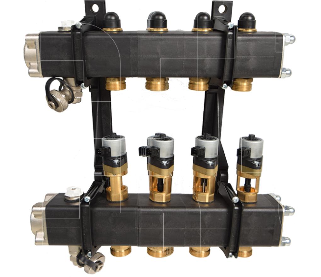 Autotemp collectorset 4-kringen (verdeler+verzamelaar) - incl. zonemotoren, montagebeugels