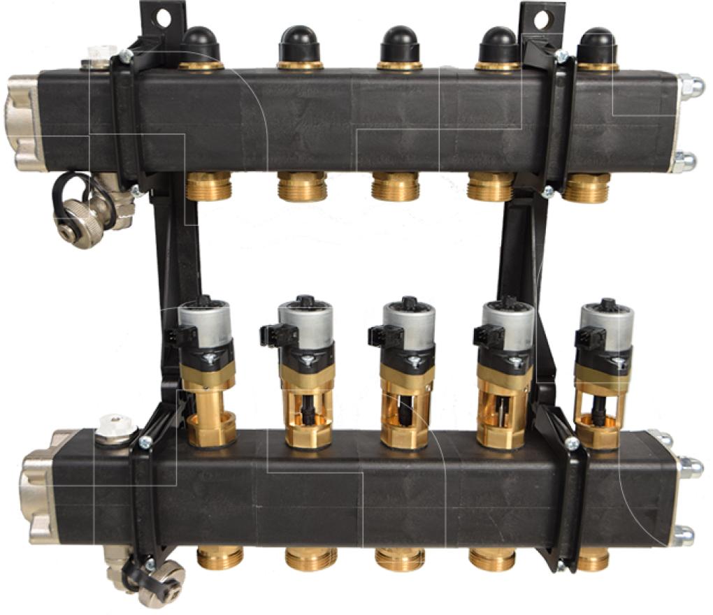 Autotemp collectorset 5-kringen (verdeler+verzamelaar) - incl. zonemotoren, montagebeugels