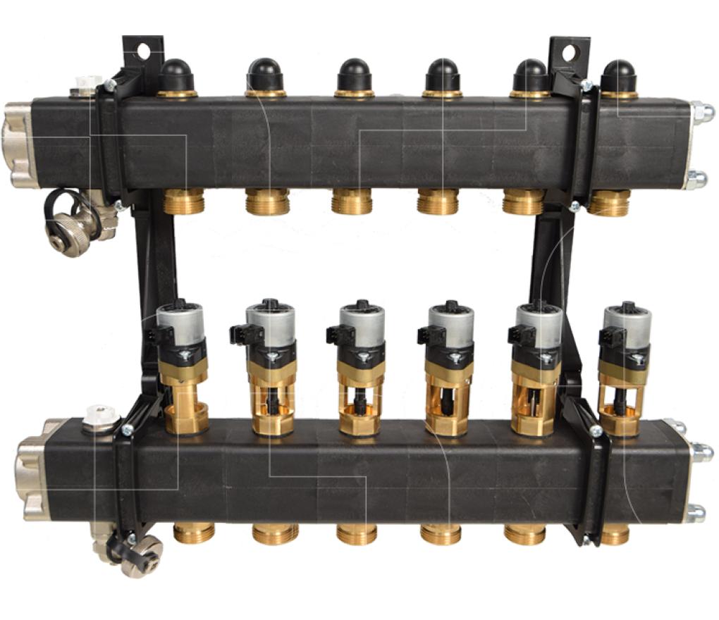 Autotemp collectorset 6-kringen (verdeler+verzamelaar) - incl. zonemotoren, montagebeugels
