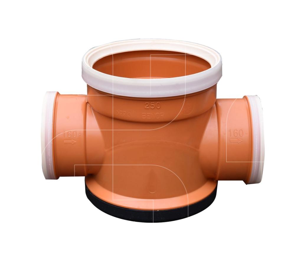 De in- en uitlaten hebben een gelijke diameter, zijn geschikt voor het aansluiten van een PVC, PE en PP-leidingen met gladde wand.
