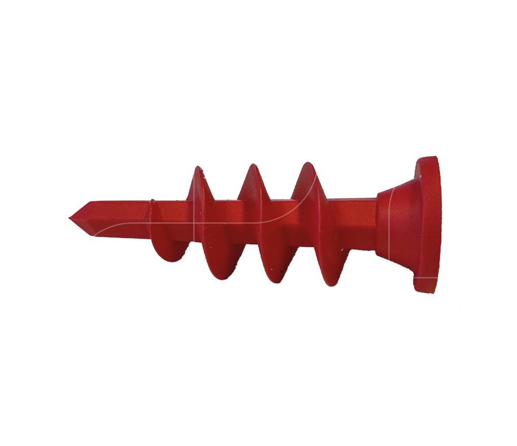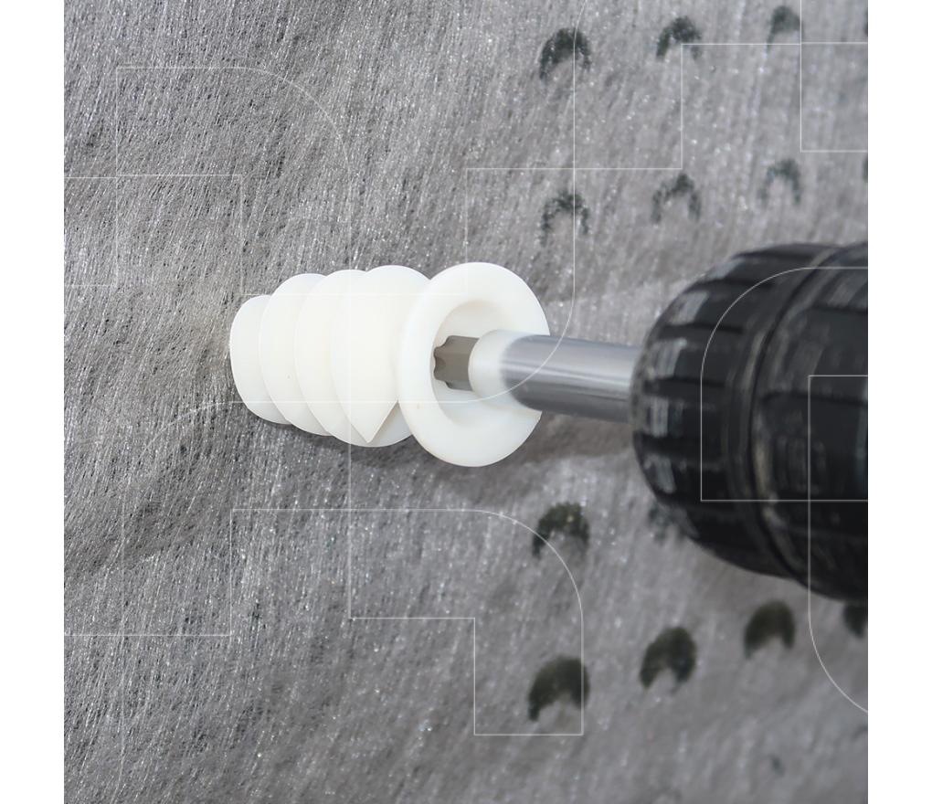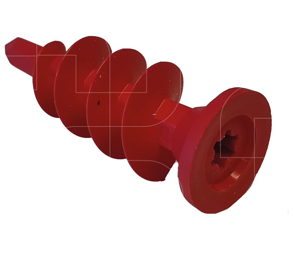 Kunststof schroef met groffe draad en flens die de folie op zijn plaats houdt