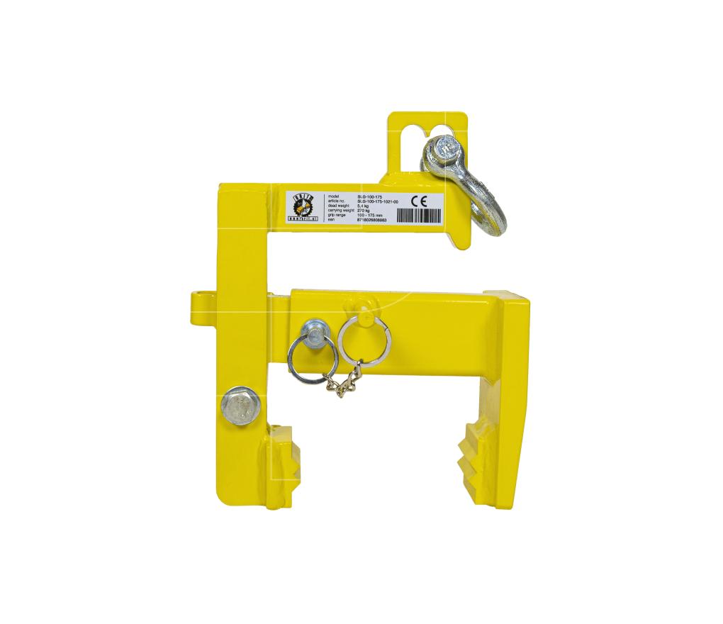 Door de twee hijspunten in de balansarm hangt de klem altijd in balans, ongeacht met welke wanddikte er gewerkt wordt.