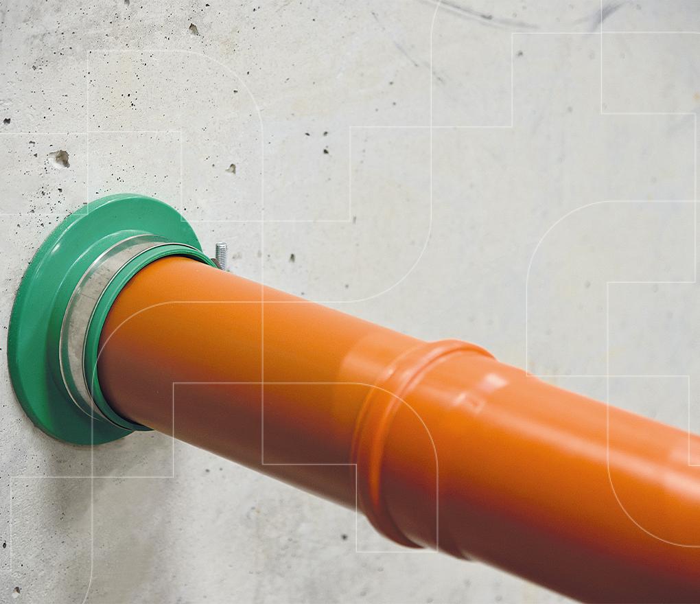 De aansluitafdichting is een drukwaterdichte afdichting en aansluitmof om kabelbeschermings- of rioleringsbuizen aan te sluiten op diamantgeboorde gaten of mantelbuizen.