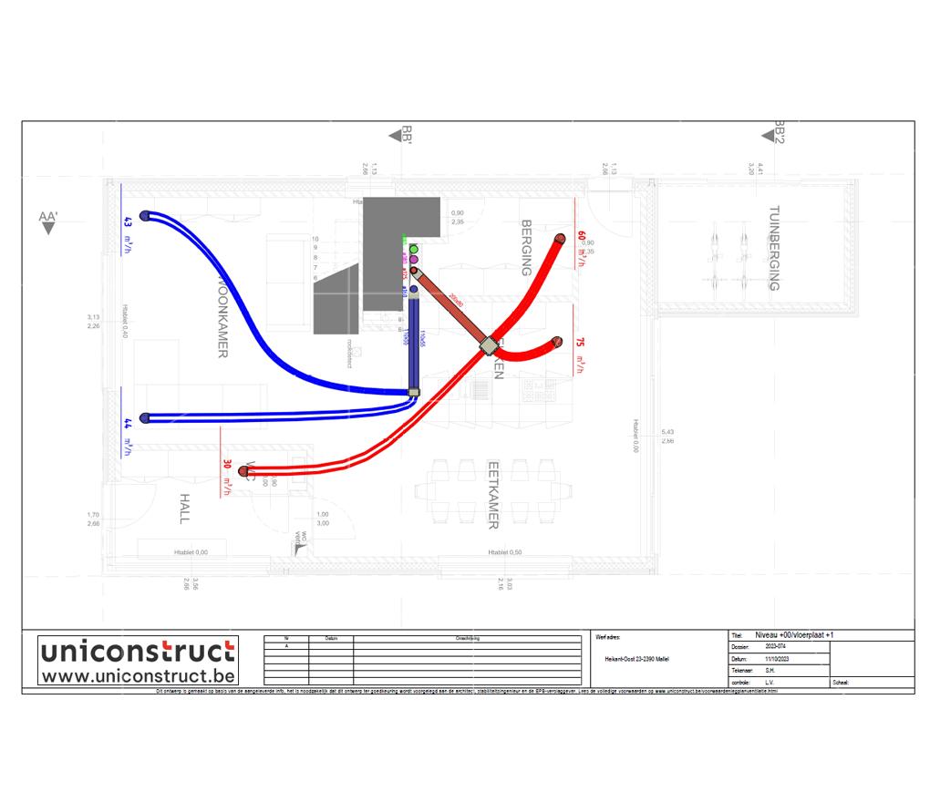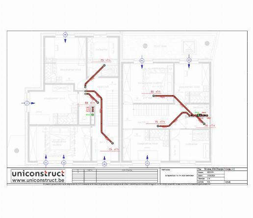 Onze studiedienst ontwerpt een legplan ventilatie in 2D. U krijgt een bovenaanzicht van elk verdiep aangeleverd op basis van de door u gekozen kanaalsystemen en ventilatie-unit. Een juist ontwerp en bijhorend legplan zorgt voor een vlotte installatie en een lager verbruik van de unit.