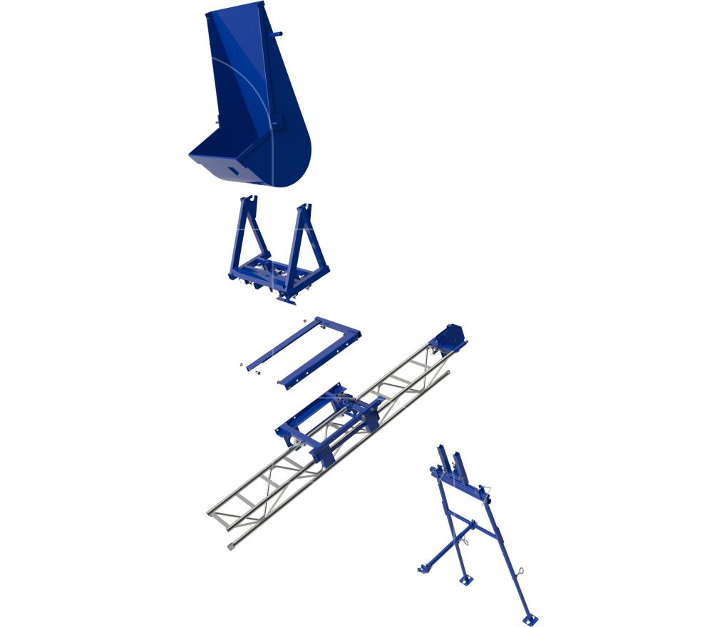De kantelbak-kit is een uitbreidingspakket op de universele bouwlift (basispakket) om zand / mortel / beton naar het gewenste niveau te brengen.