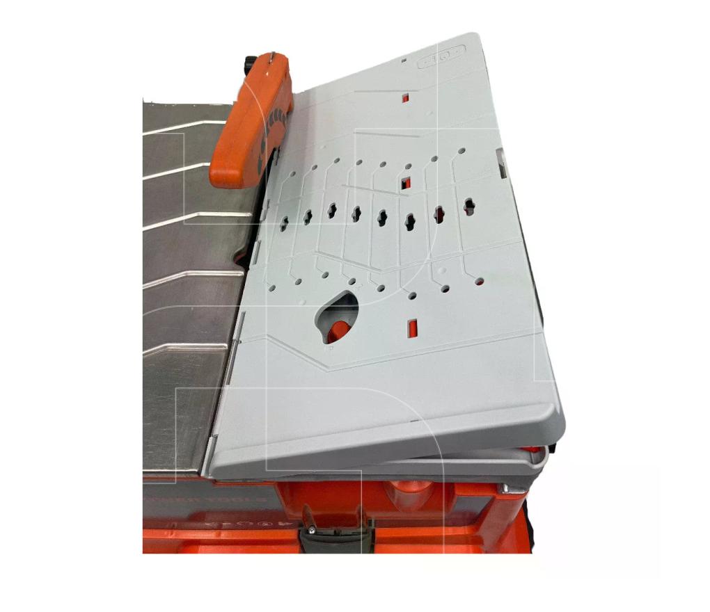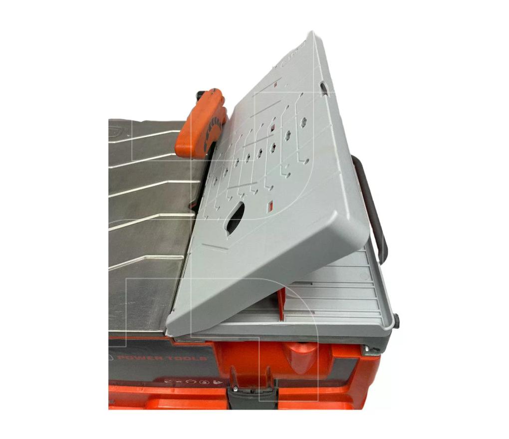 Met het iQ228CYCLONE verstekbevestigingsaccessoire is het mogelijk om versteksneden te maken voor keramische en stenen tegels. Vergrendel het verstekbevestigingsaccessoire eenvoudig op de roltafel voor nauwkeurige schuine versteksneden.