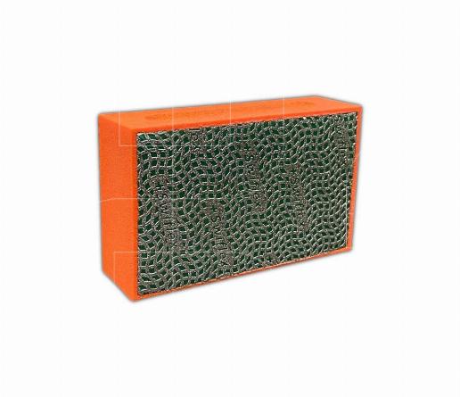 Oranje 50 grit diamanten polijstpad gebruikt om randen van tegels te polijsten en die fabrieksrand te herstellen.