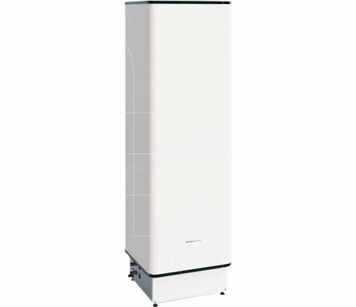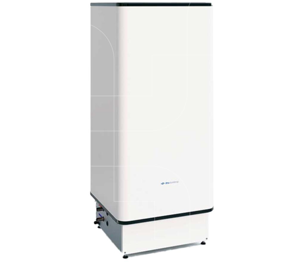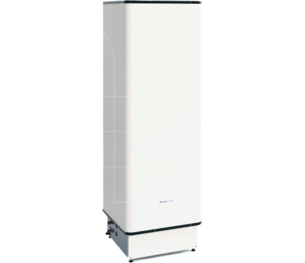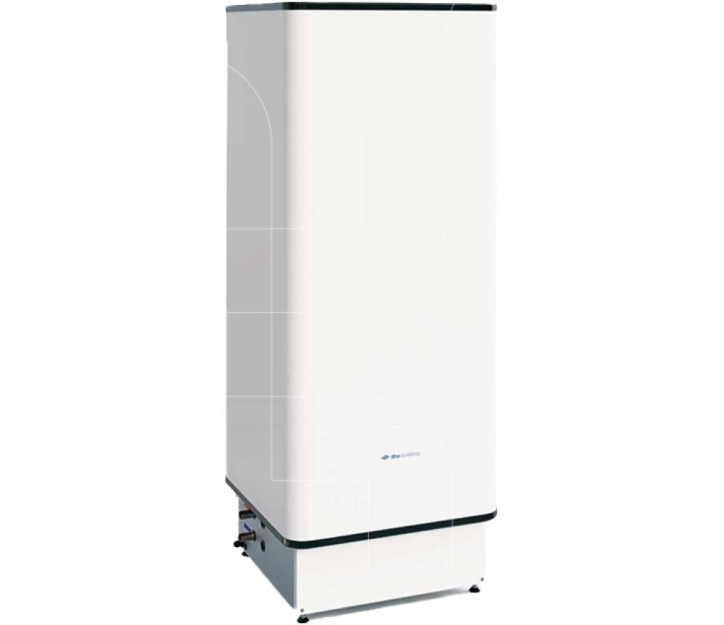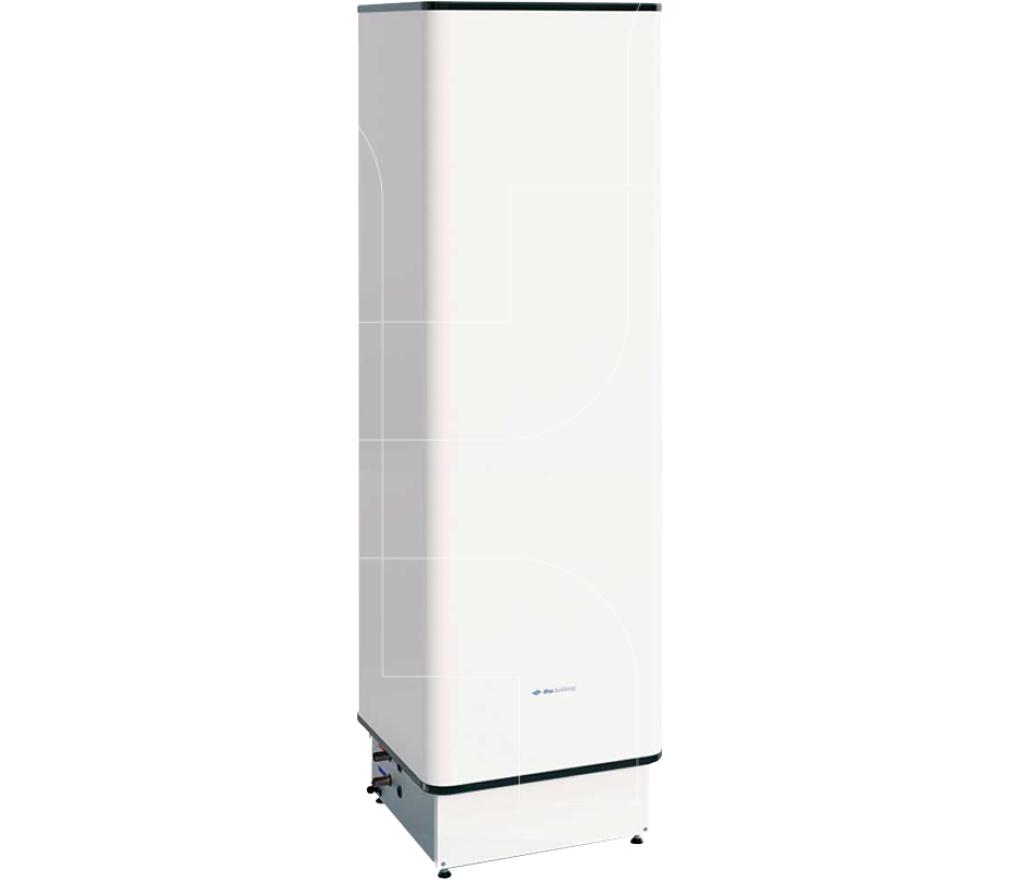 De i-WPV voorraadvaten zijn geïntegreerd in een vierkante omkasting. Het wordt indirect via een in de vloersteun geïntegreerde warmtewisselaar door de warmtepomp verwarmd.