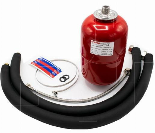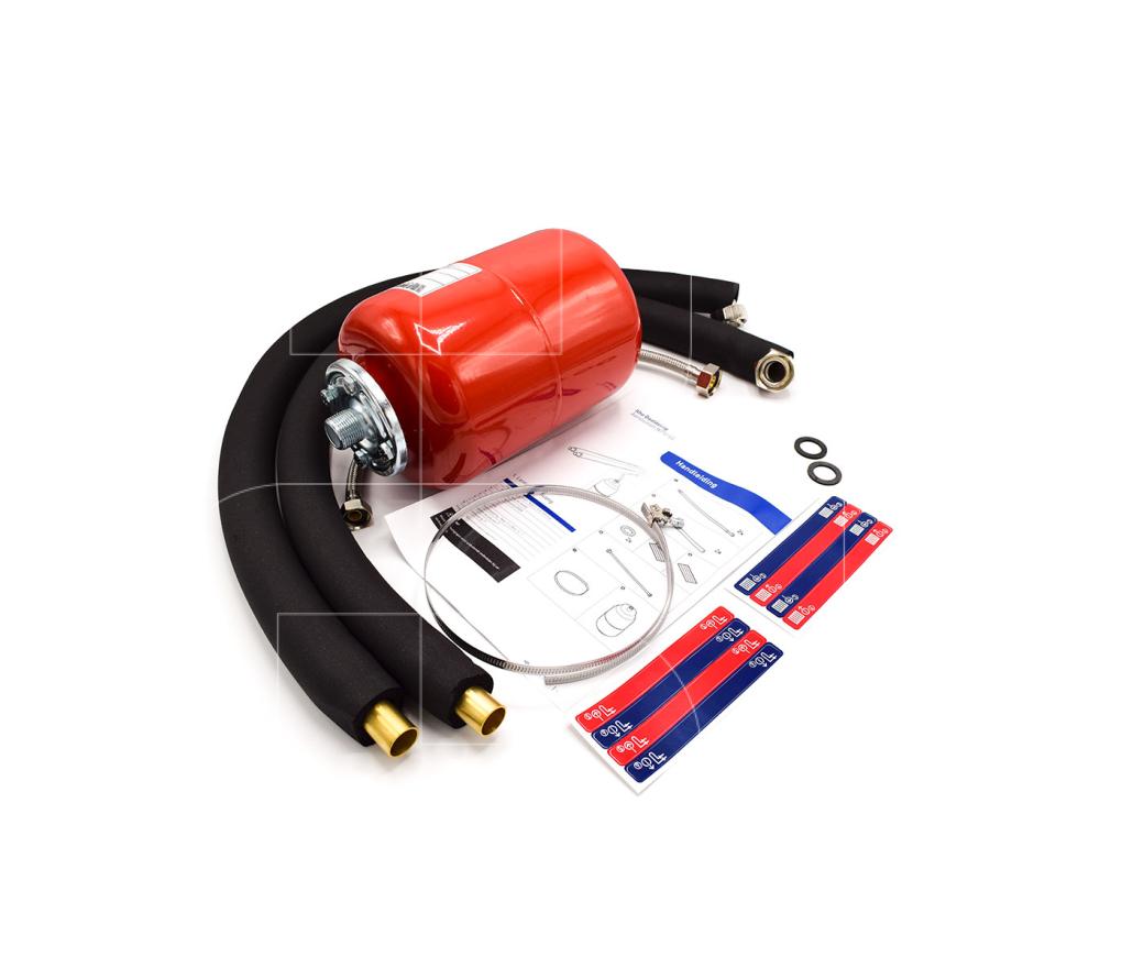 Set flexibele leidingen voor aansluitingen bron of afgiftesysteem inclusief isolatie en drukexpansievat.