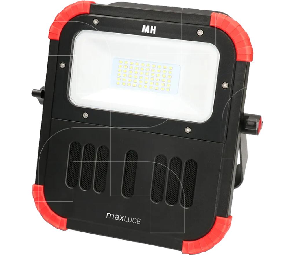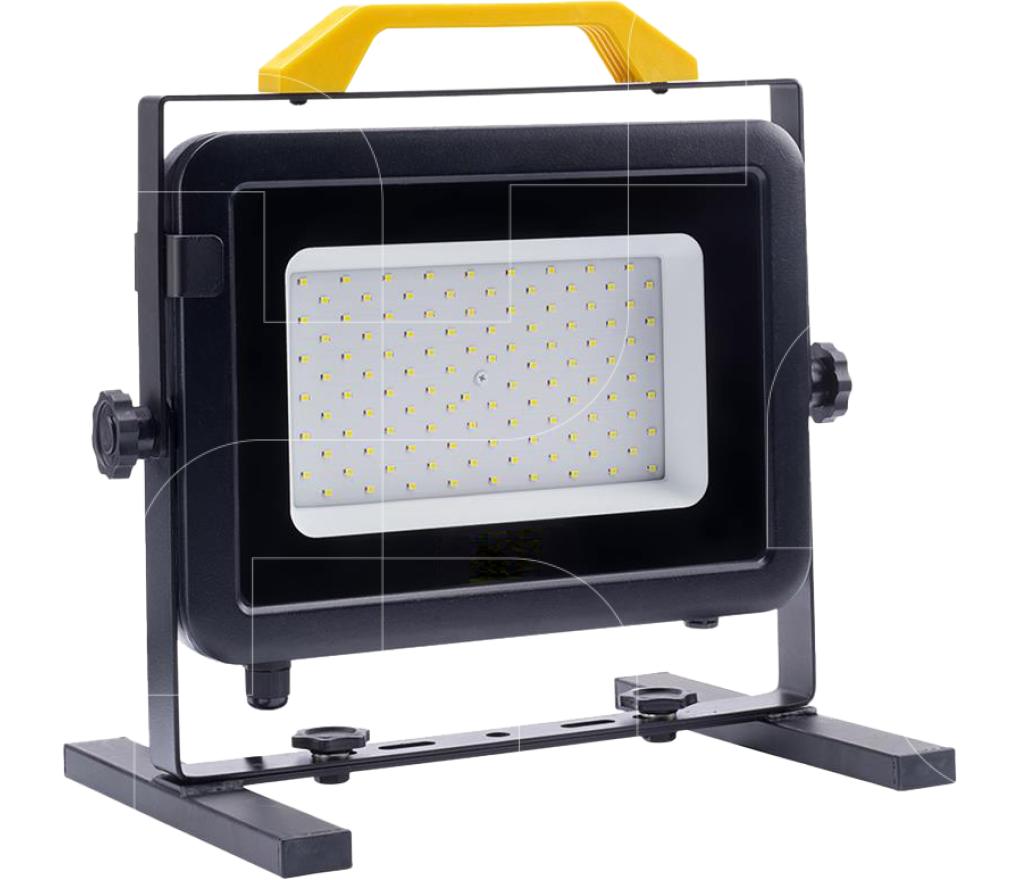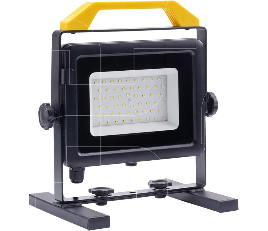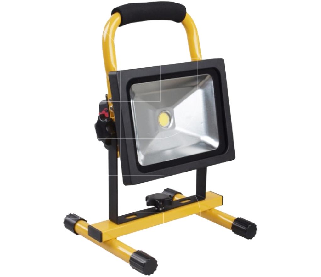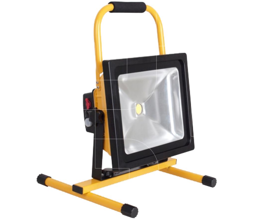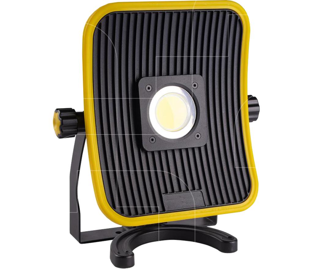 COB LED accu bouwlamp 25 W met slagvast aluminium behuizing met siliconen beschermrand.