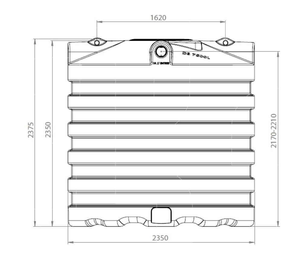 Cilindrische kunststof tank voor ondergrondse opslag van regenwater 7500L
