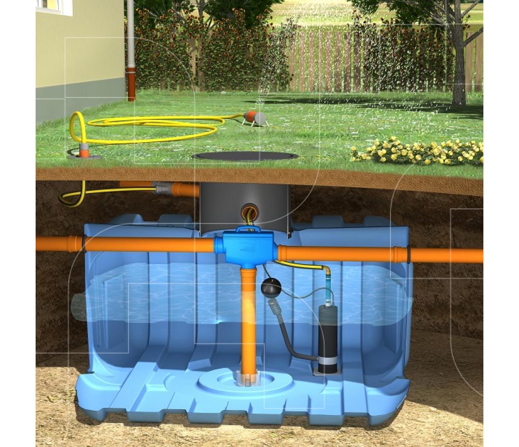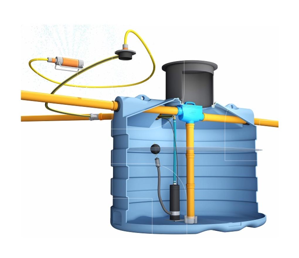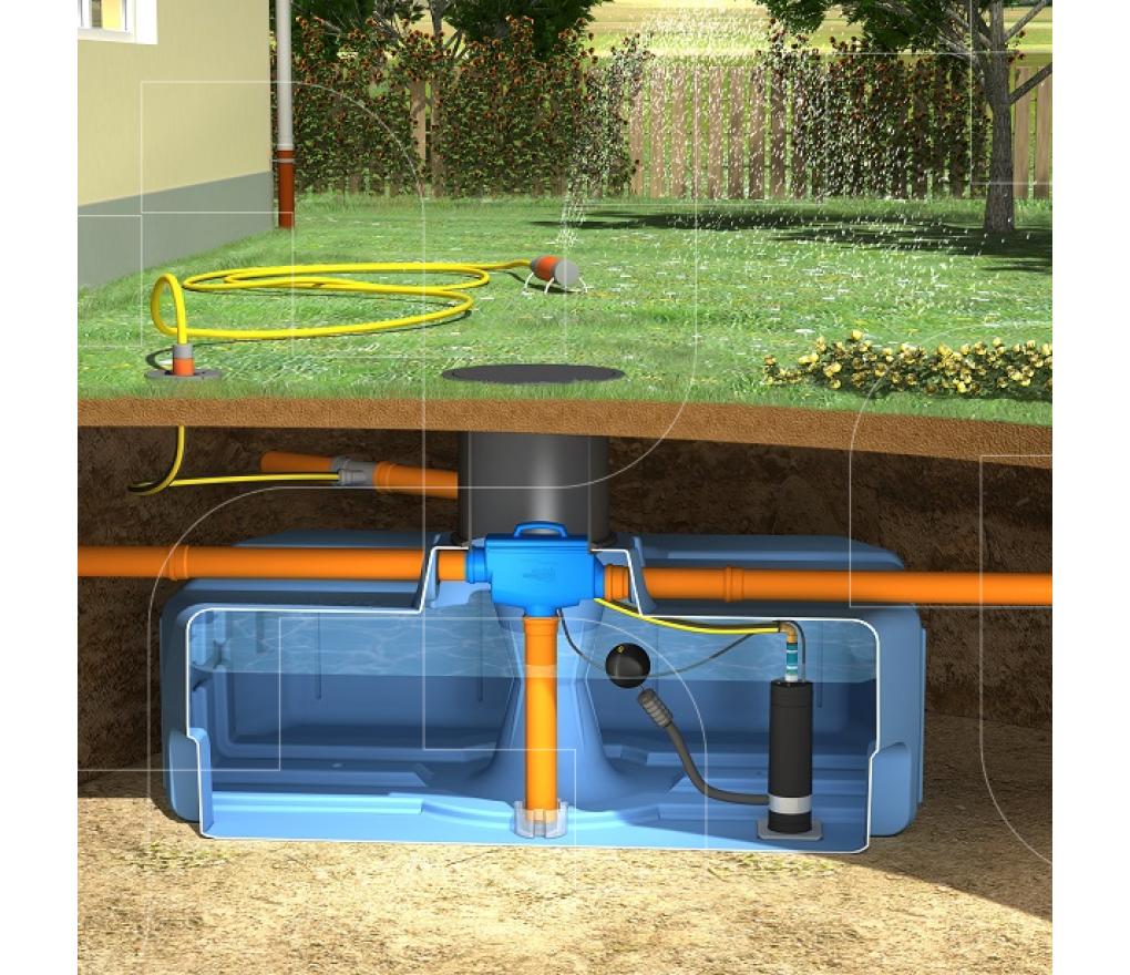 DS7500 is een regenwaterwateropvangsysteem te installeren in de tuin om regenwater te hergebruiken voor behoeften die geen drinkwaterkwaliteit vereisen.