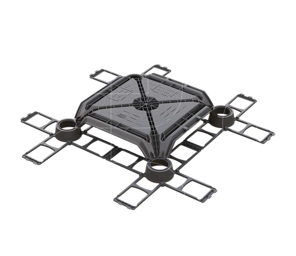 - Vierarmige basisroostermodules worden op de plaat gelegd en gekoppeld door drukhaken, dit creëert een mapping voor de doorgang van MEP-systemen