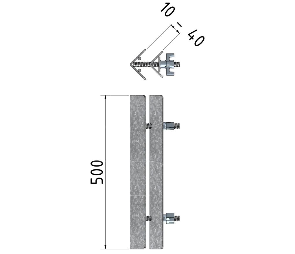 Paneelklem / hoekspanner voor bekistingspaneel 10-40mm 50cm hoog