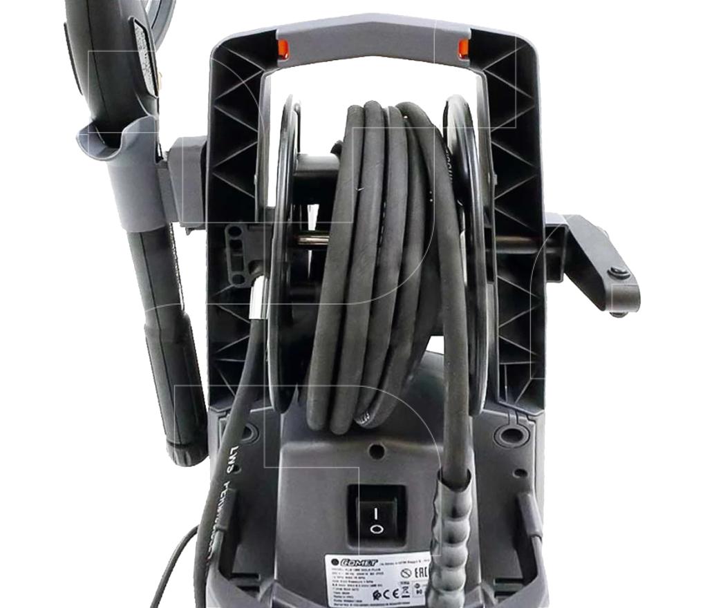 Hogedrukreiniger met axiale pomp in messing voorzien van 3 roestvrijstalen plunjers en sterke inductiemotor.