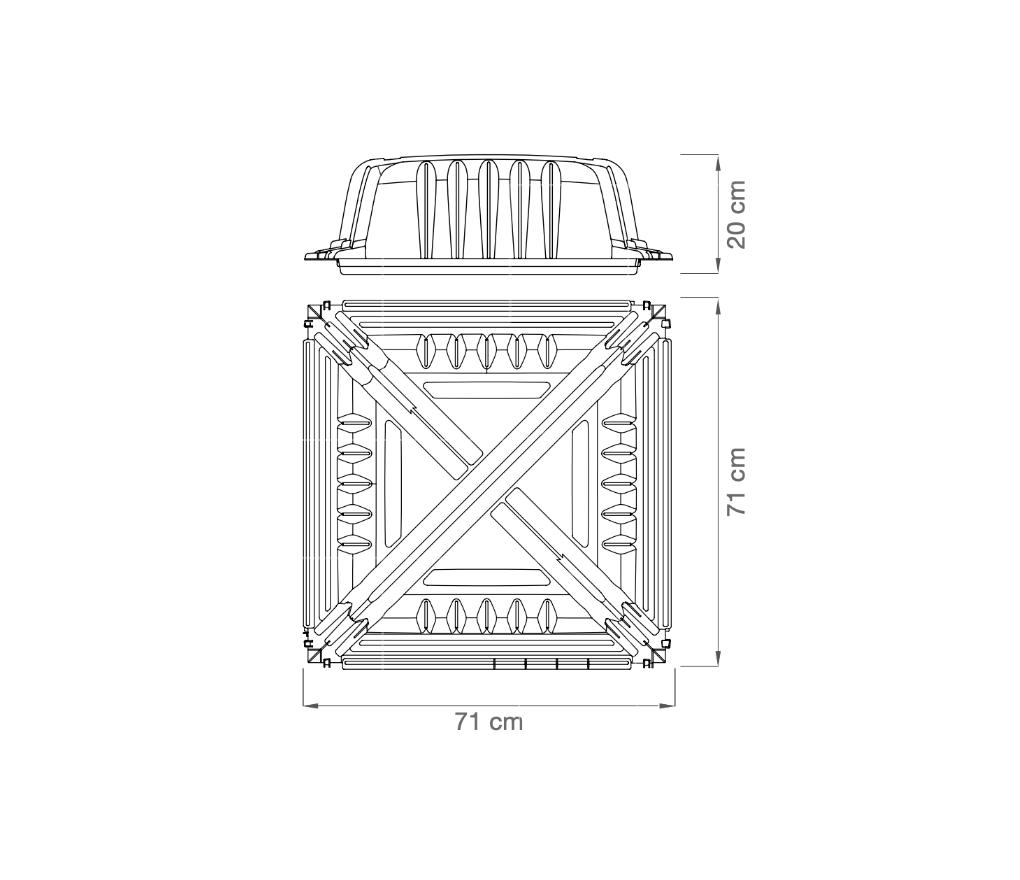 Vergeleken met de onstabiele en niet-duurzame vulmaterialen zoals verdichte grond en grind, creëert Skynet dragende geribde platen ondersteund door structurele pijlers die volledig voldoen aan de Eurocode (EC2), NTC2018 en ACI213.