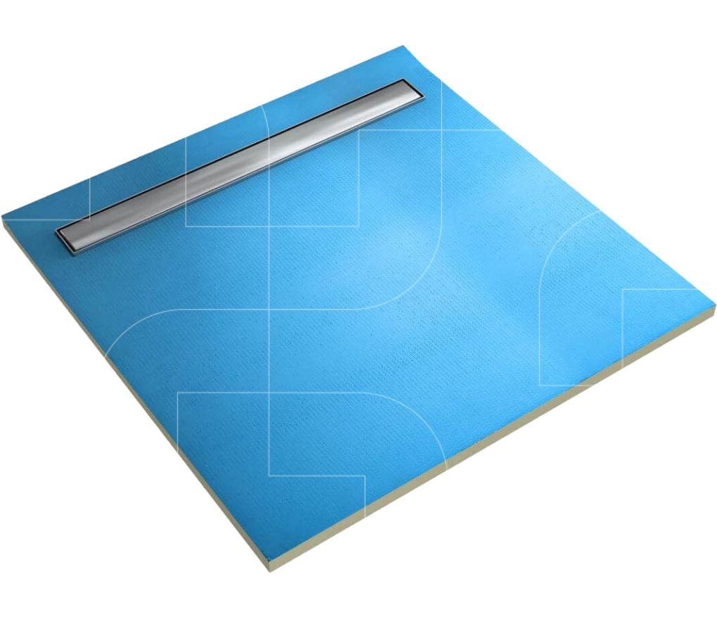 Een betrouwbare, stevige, voorgevormde en 100% waterdichte douchebodem bestaat uit een kern gemaakt van CFK-vrij, hard, geëxtrudeerd polystyreenschuim en een waterbestendige, vezelversterkte coating.