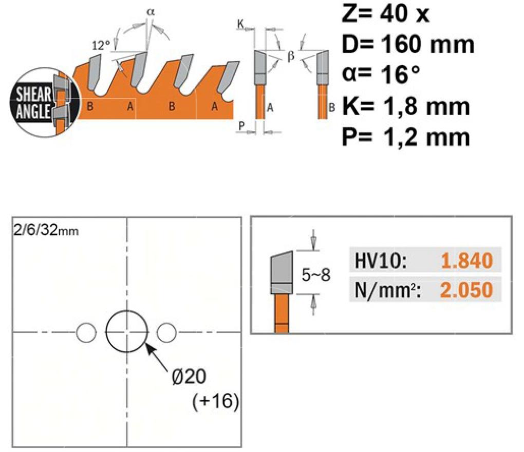 Universeel zaagblad HW 160x20(+16)x1,8 Z40